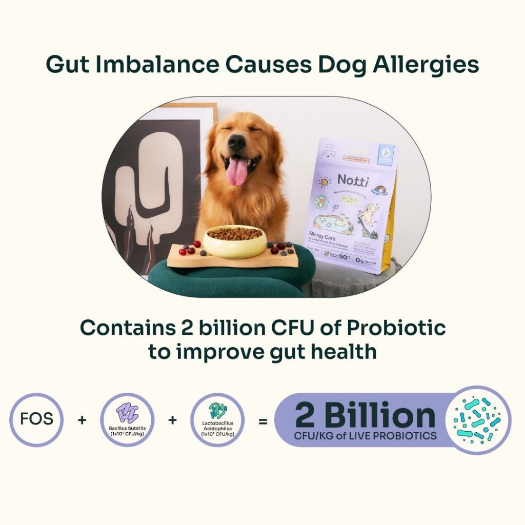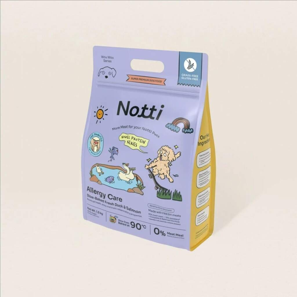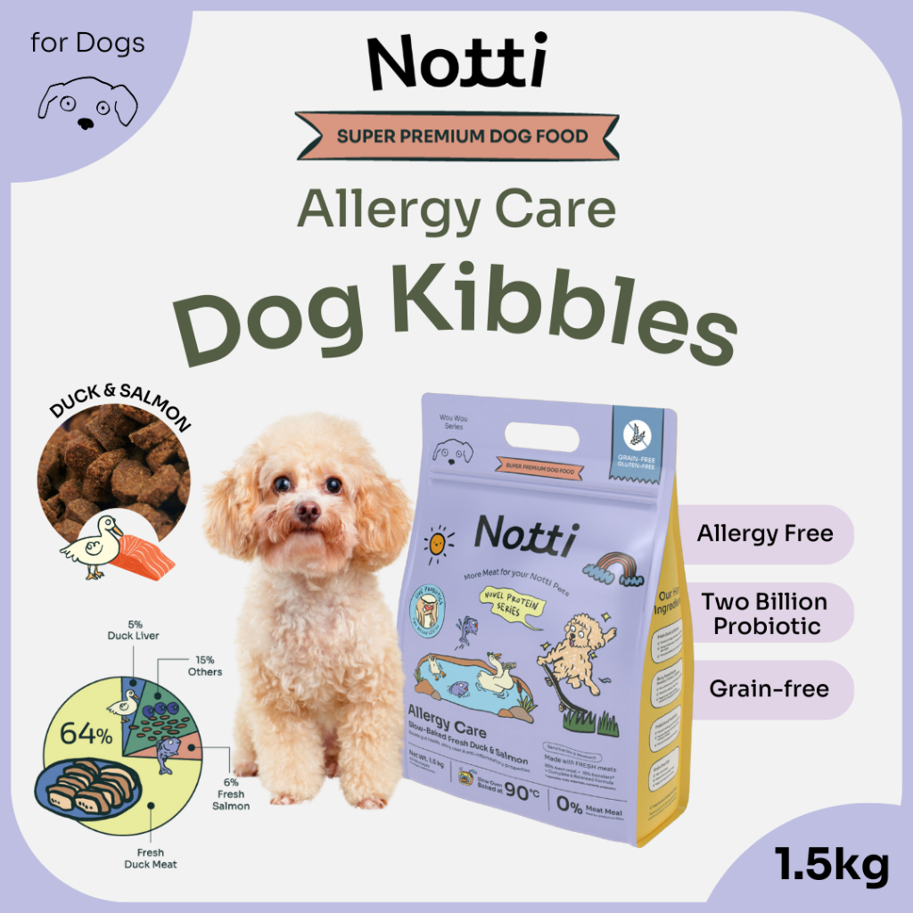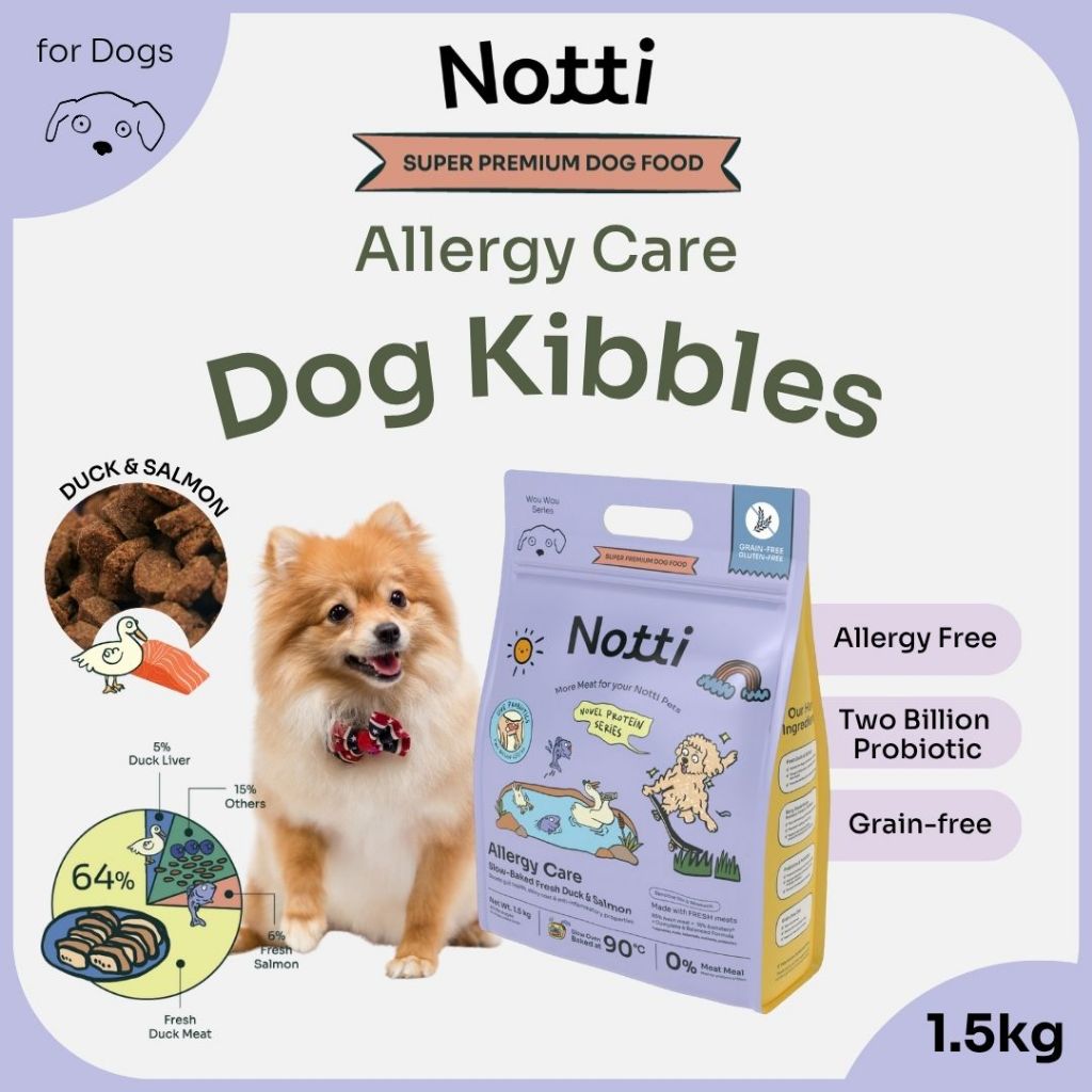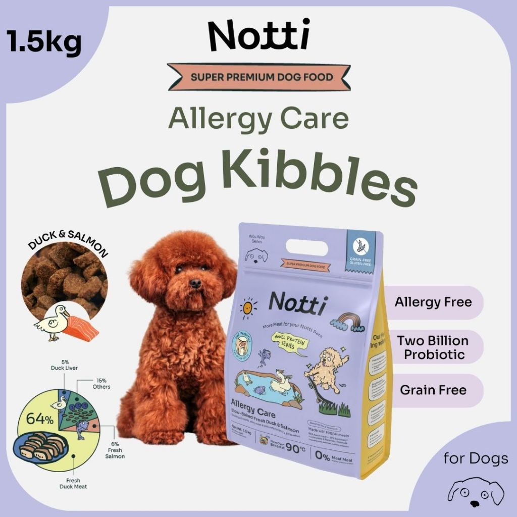 1.5kg NOTTI Dog Allergy Care Slow-Baked Fresh Duck & Salmon Dog Food Makanan Anjing Kibbles Probiotic Blueberry 低温烘焙狗粮
