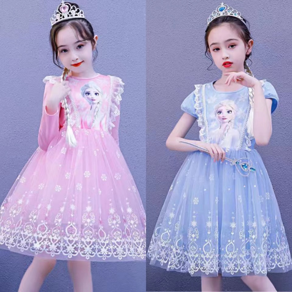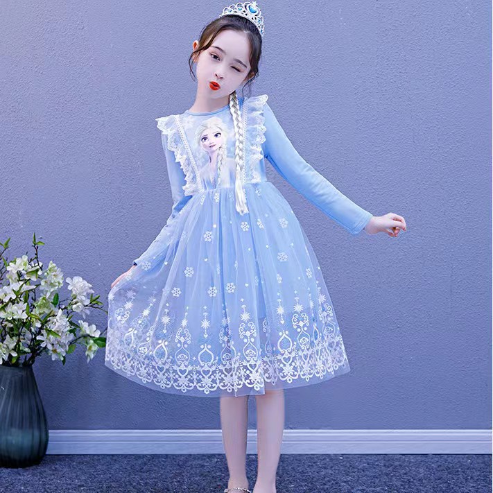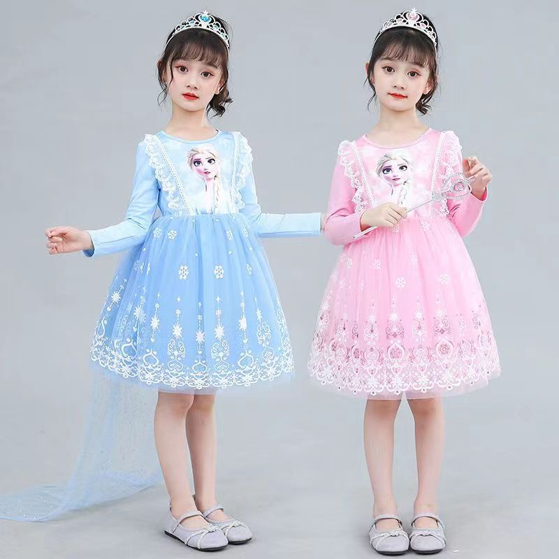 [1-7 Years] Dress Baby Girl Frozen Princess Elsa Dresses for Kids Long Sleeve Autumn Girl Clothes