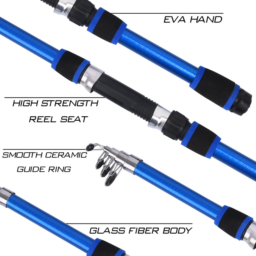 1.8M Fiber Glass Spinning Telescopic Fishing Rod 5.2:1 Gear Ratio Spinning Reel Joran Pancing Full Set