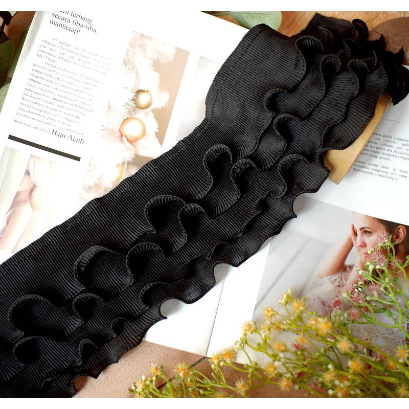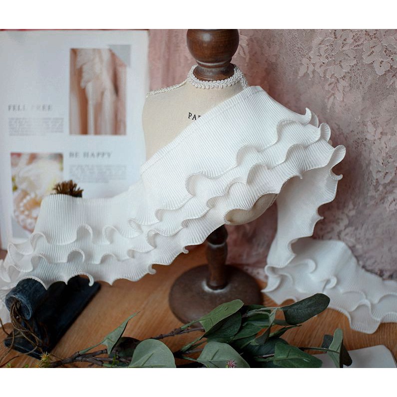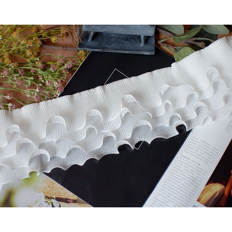1 meter price Border Lace stretch double fungus wrinkle lace chiffon elastic lace pleated skirt DIY clothing accessories