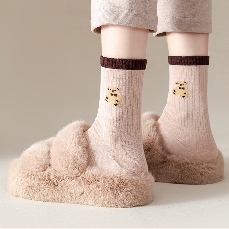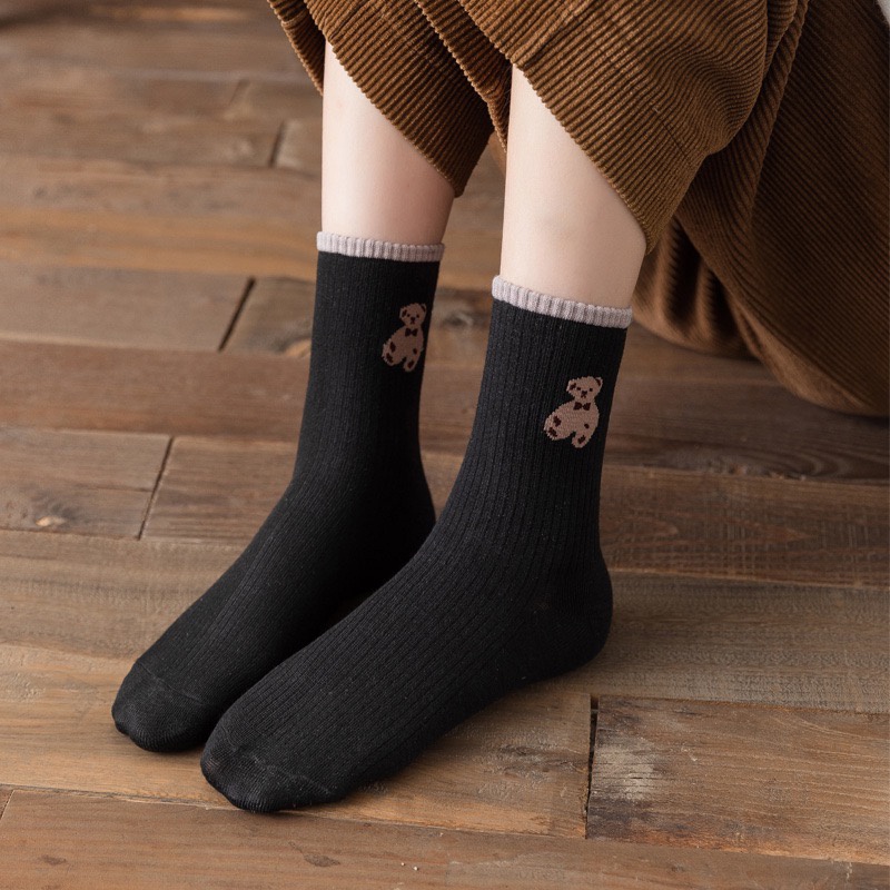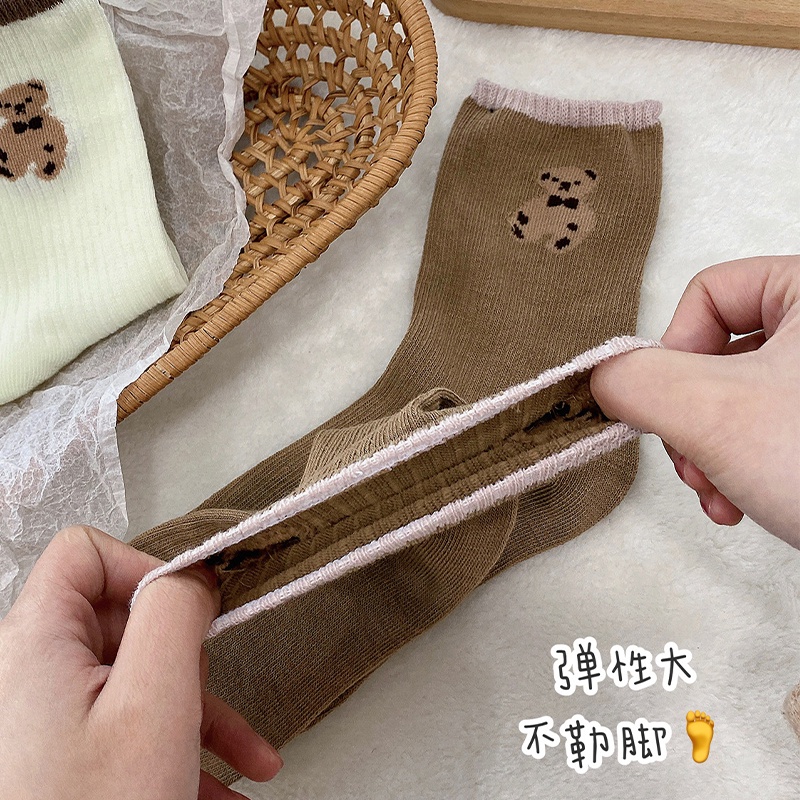 1 Pair Cute Bear Design Stoking Socks Sweat Absorption Cotton Sock Girls Women Boots Sneakers Shoes Stocking Stokin
