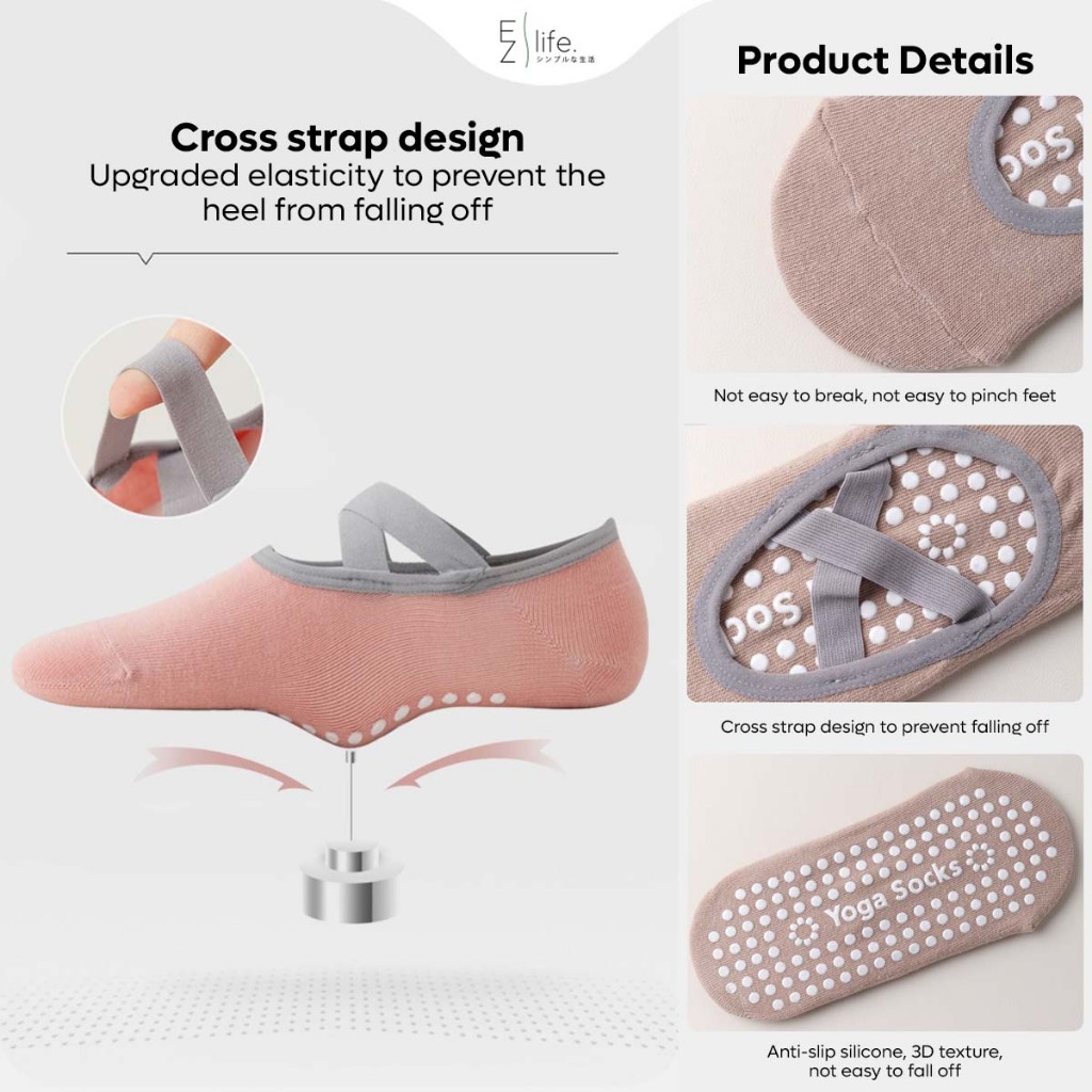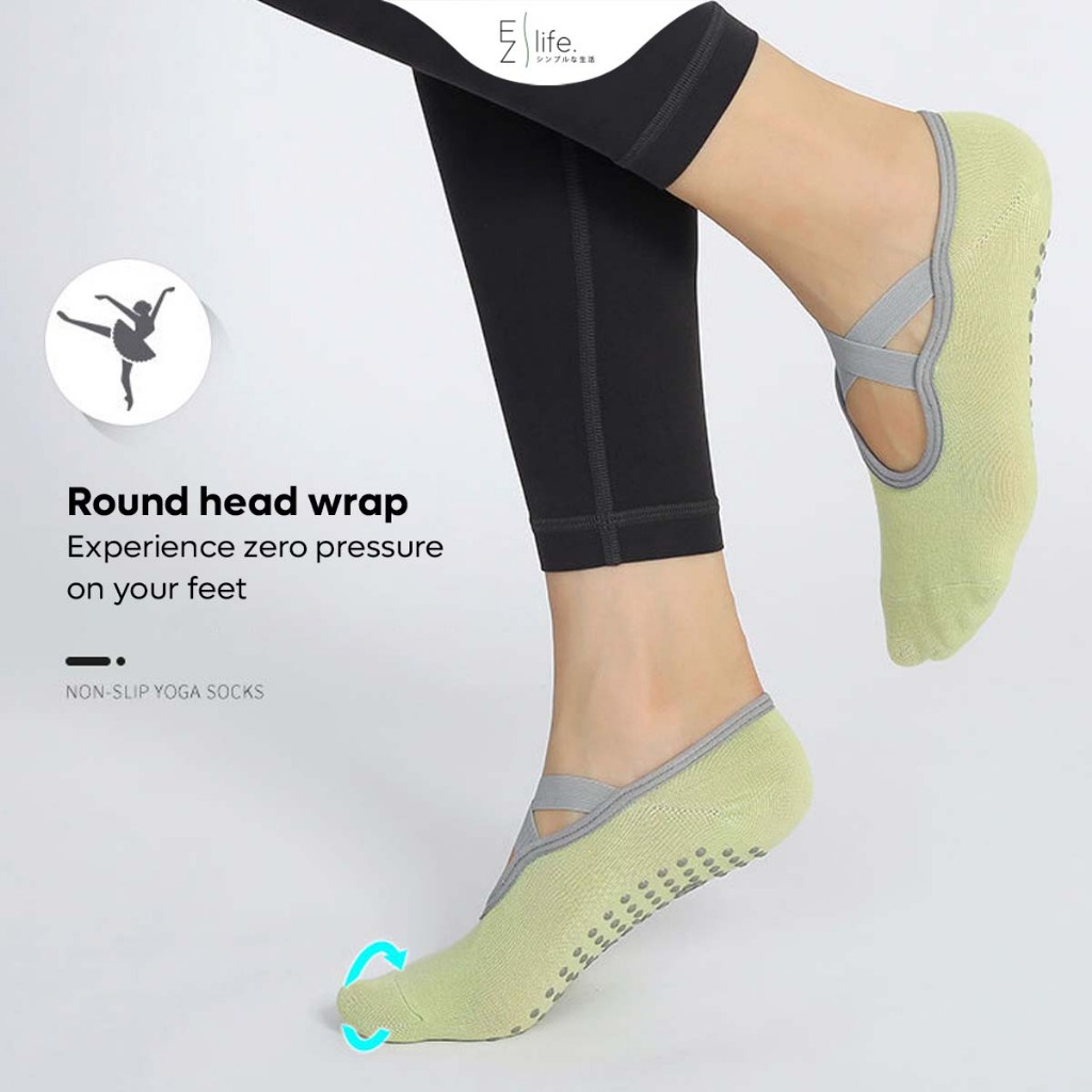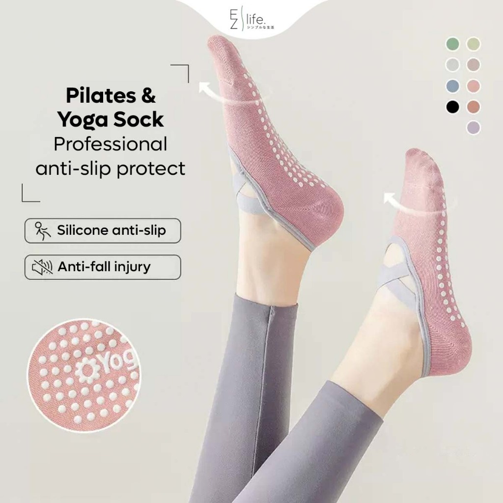 1 Pair Stokin Pilates EzLife Pilates Socks Yoga Non-Slip Grips & Straps Silicone Base indoor sports fitness