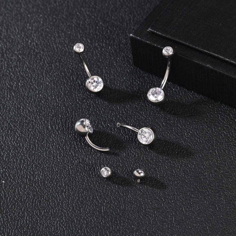 1 PC G23 Titanium Navel Piercing 14G Crystal Belly Button Piercing Silver Body Piercing Prevent Allergy Navel Ring Jewelry