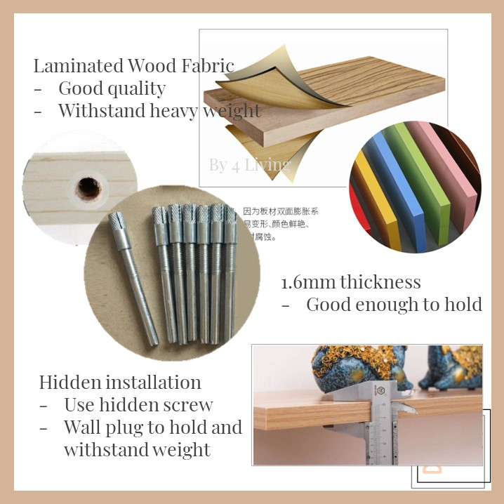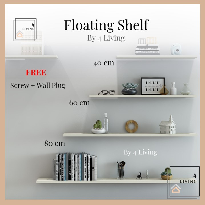1 Pcs Floating Wall Shelf 40/60/80/100cm Rak Dinding Gantung Hiasan Hanging Shelf Home Decoration Wall Rack