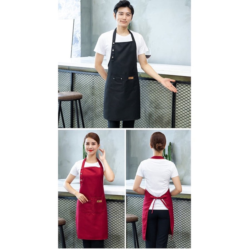 (1 PCS) Hang Neck Apron with Front Pocket Coffee Shop Fashion Full Apron Kitchen Adult Overalls
