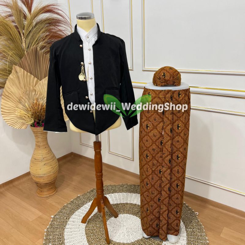 (1 set, Men) Javanese Traditional Clothing / Beskap + Jarik + Blangkon + Free Benggol | Hewes- Sido Mukti