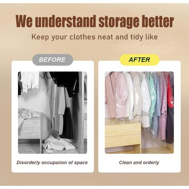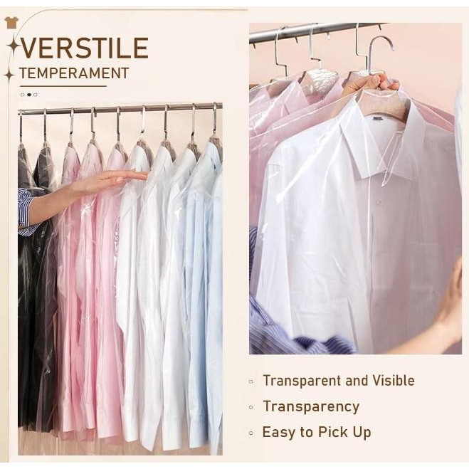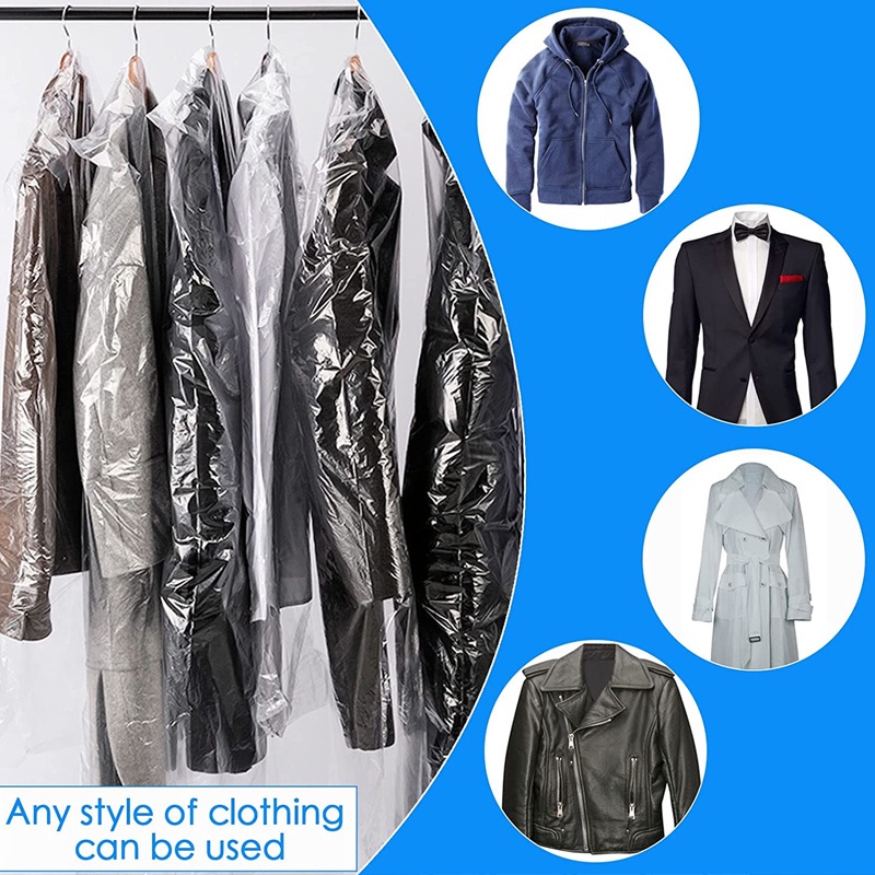 10-100 Pcs Plastik Baju Gantung Cloth Cover Plastic Dust Cover Clothes High Quality Transparent Reusable