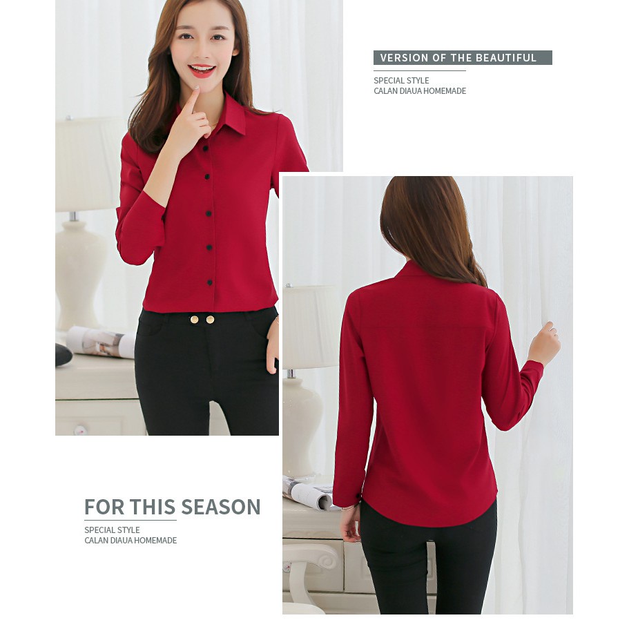【10 Colors】Korean Long Sleeve White Casual Chiffon Blouse Plus Size Tops Base Fashion Shirt