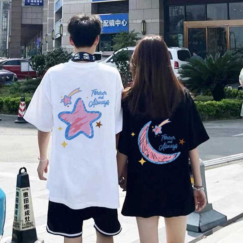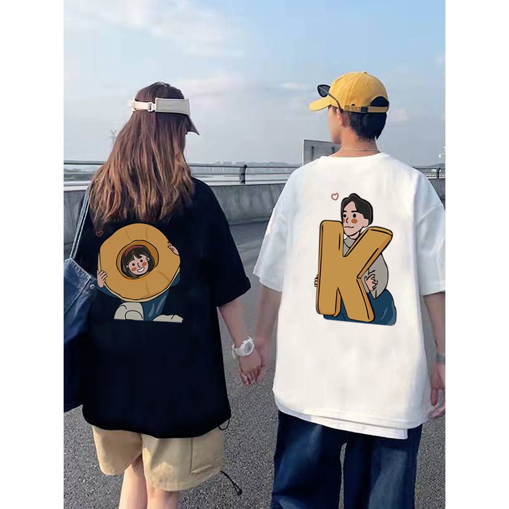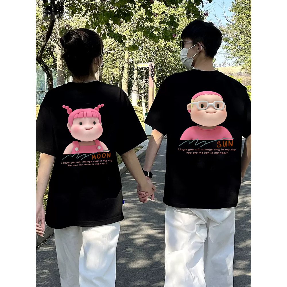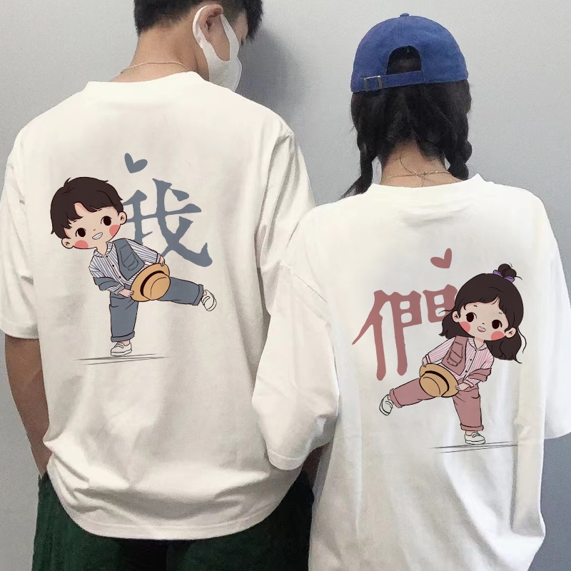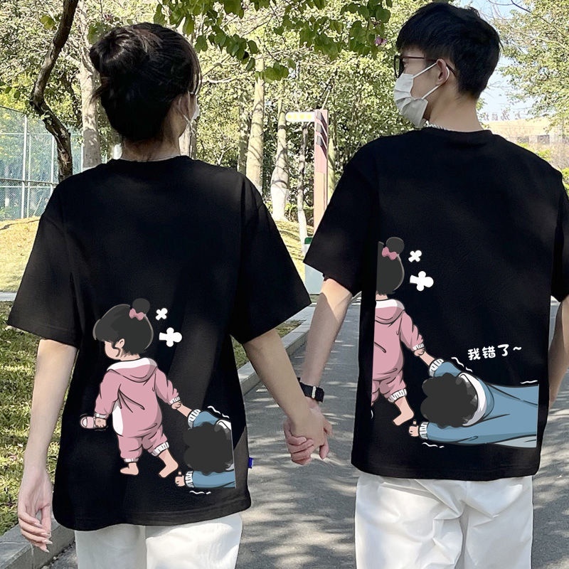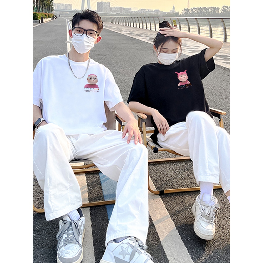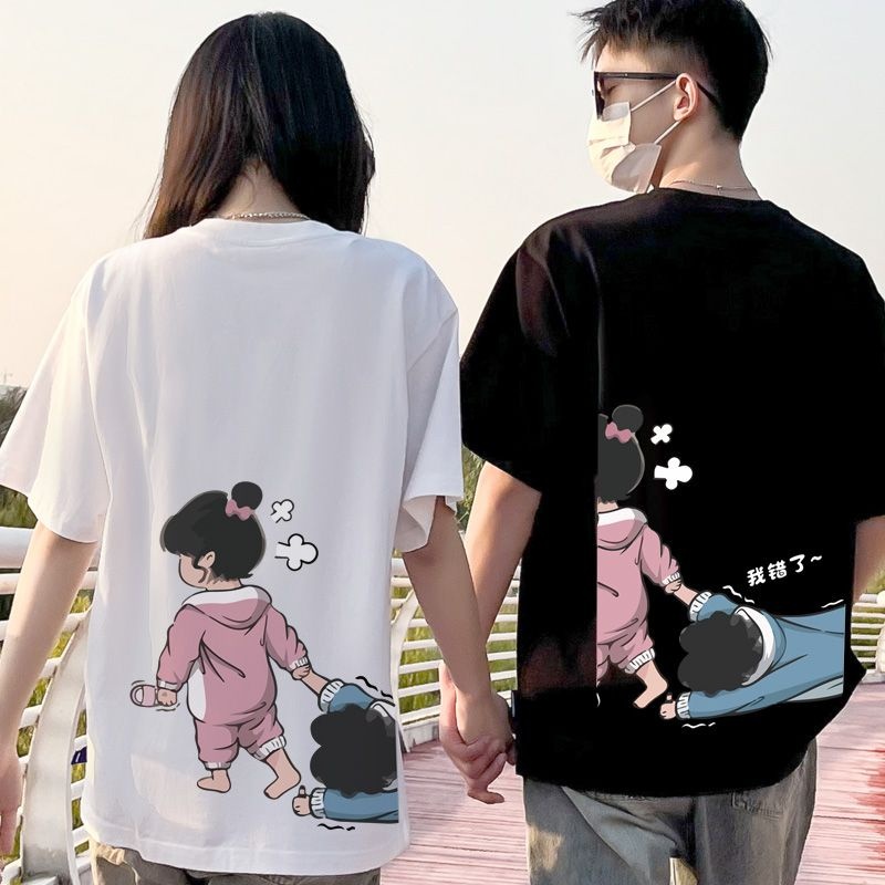 100%Cartoon Character Printed Couple t-Shirt Spring Summer Couple t Couple Wear Couple Wear Cute Half-Sleeved Top Loose Stu