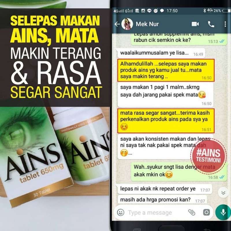 [100% ORIGINAL] AINS VITAMIN MATA SUPPLEMENT RABUN MATA EYE CARE RAWAT MASALAH MATA ANDA