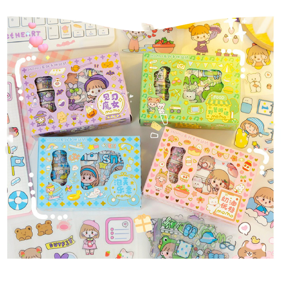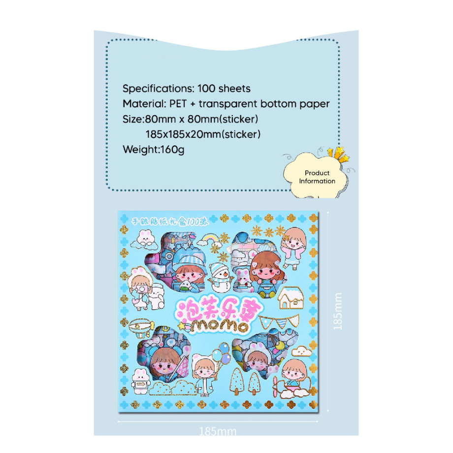 100 Pcs/Box Cute Girl Cartoon Stickers Tape Set No Repeating Pattern Transparent Water Bottle Sticker Ins Gift 可愛胶带贴纸手账