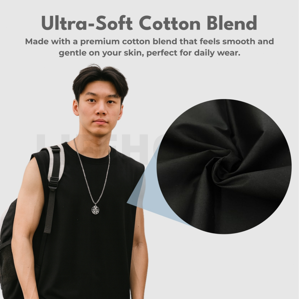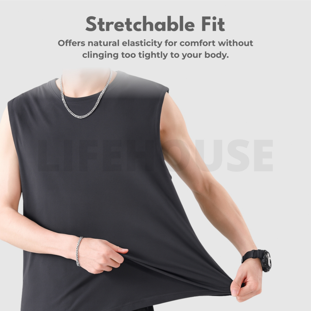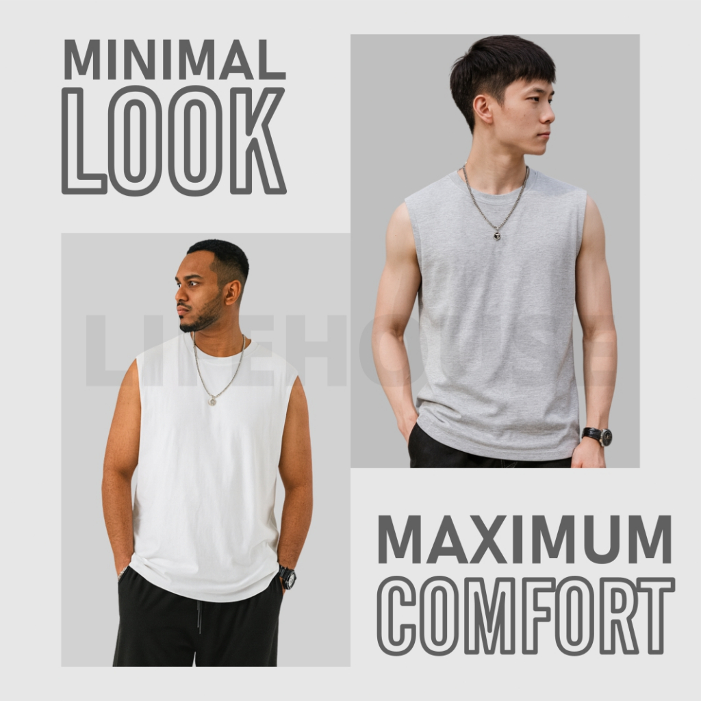 [1000 COIN REBATE] Sleeveless Top Men Singlet [M-3XL] Plain Round Neck Tank Top Men Gym Baju Sukan Tanpa Lengan Lelaki