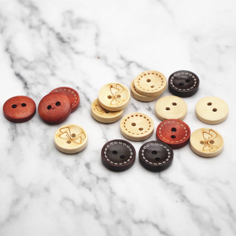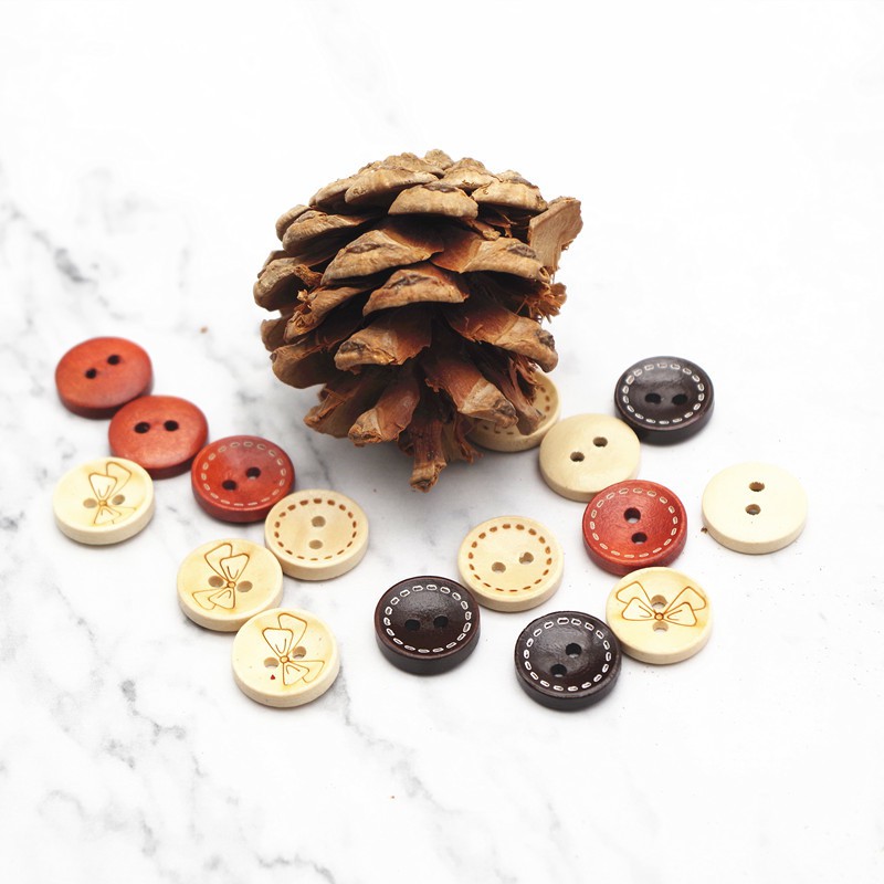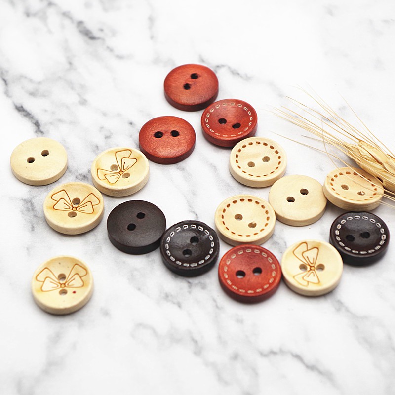 100pcs 12.5mm/15mm/18mm/20mm 2-holes Round Wooden Buttons sewing Scrapbooking DIY Craft Painting Mark Decoration