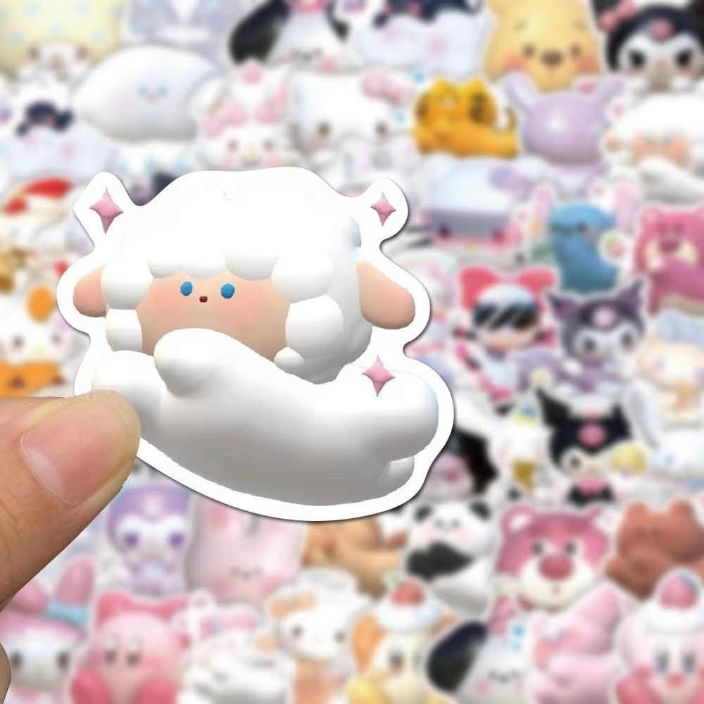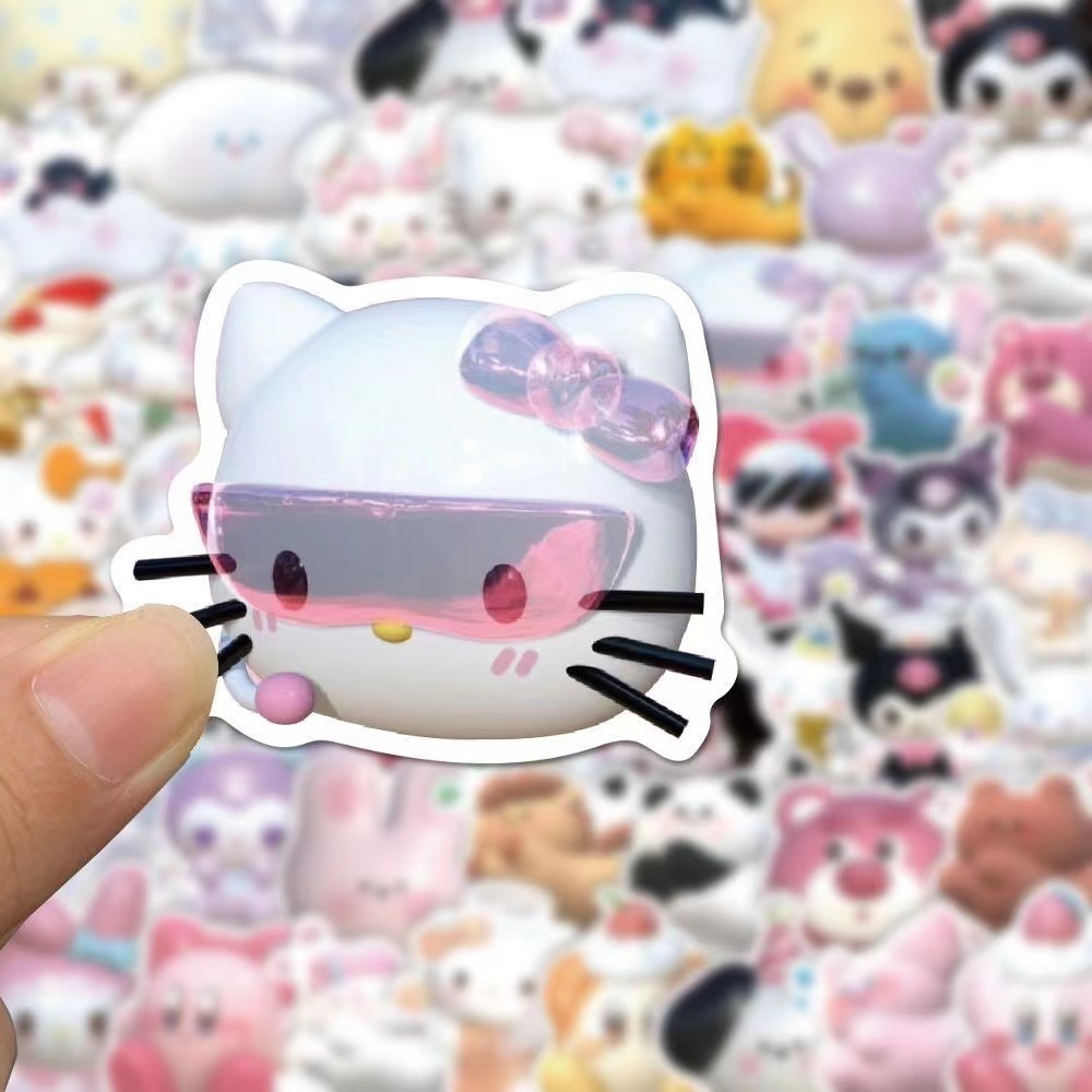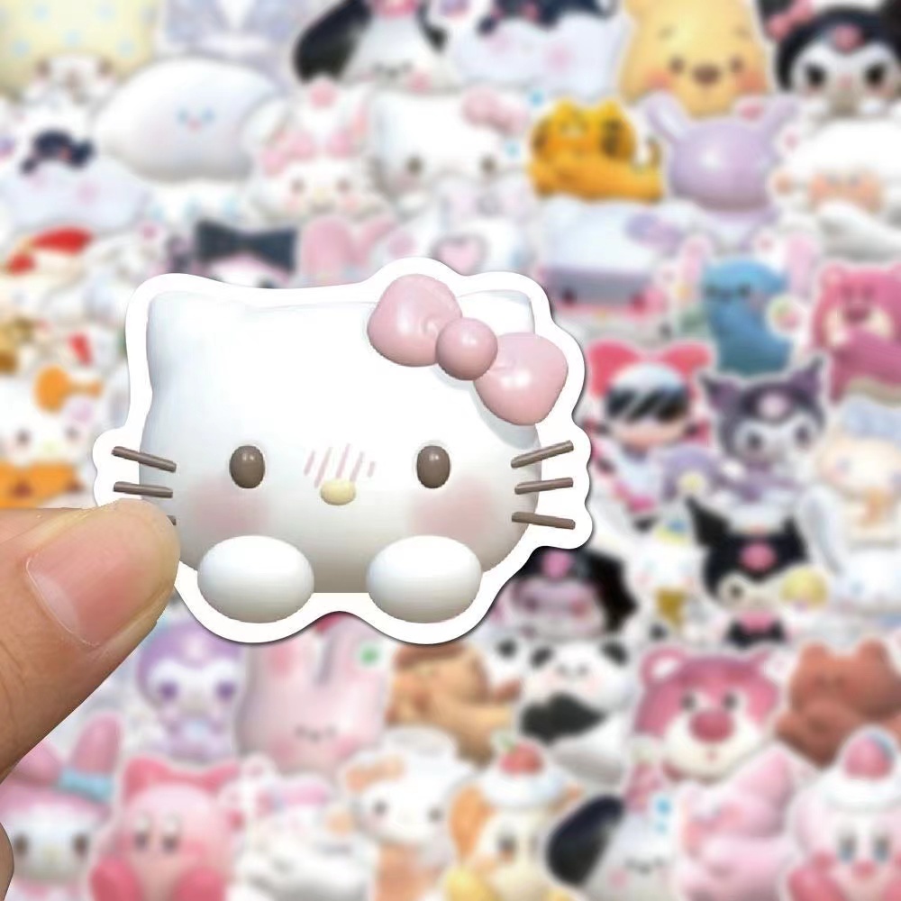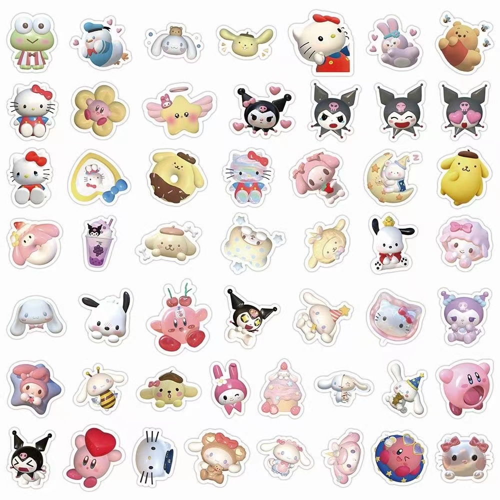 100PCS 3D Sanrio Mixed HelloKitty Mymelody Cinnamoroll Kuromi Pochacco Keroppi Stickers For Helmet Bicycle Hand Account Pencil Case Decals LanLanStickersWorld