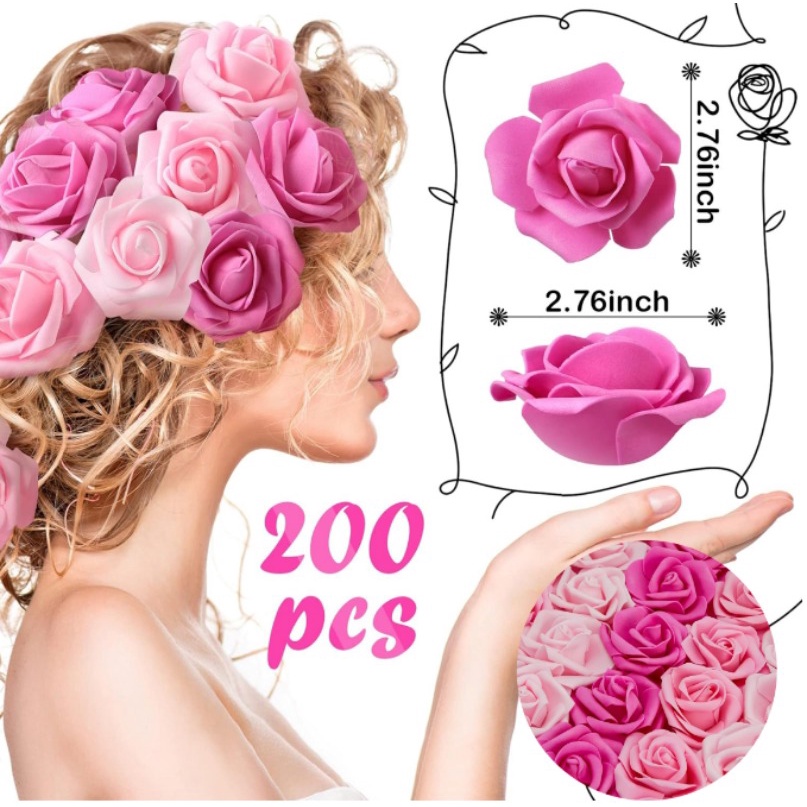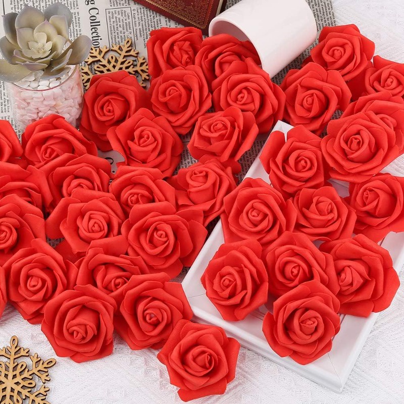 100pcs Artificial Rose Flower Heads 7cm,Stemless Fake Foam Roses for Crafts Home DIY Valentine's Day Wedding Bouquets Bridal Shower Centerpieces Party Backdrop Cake Decorations