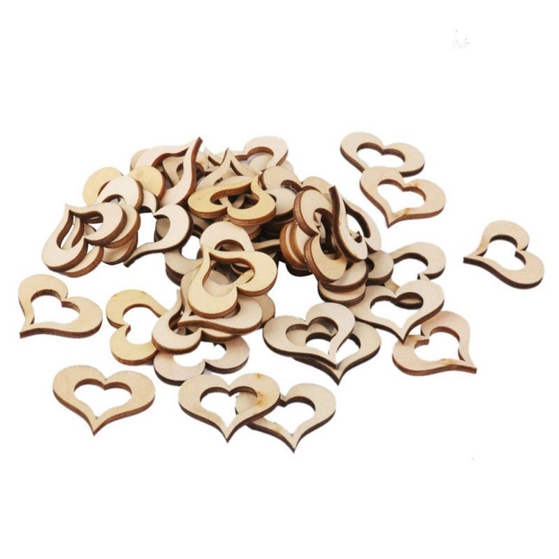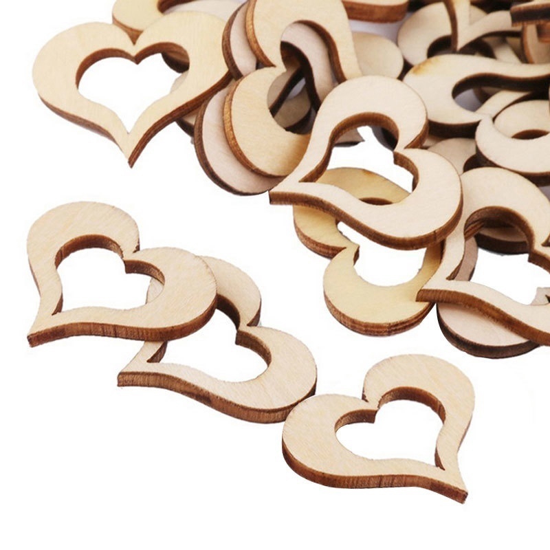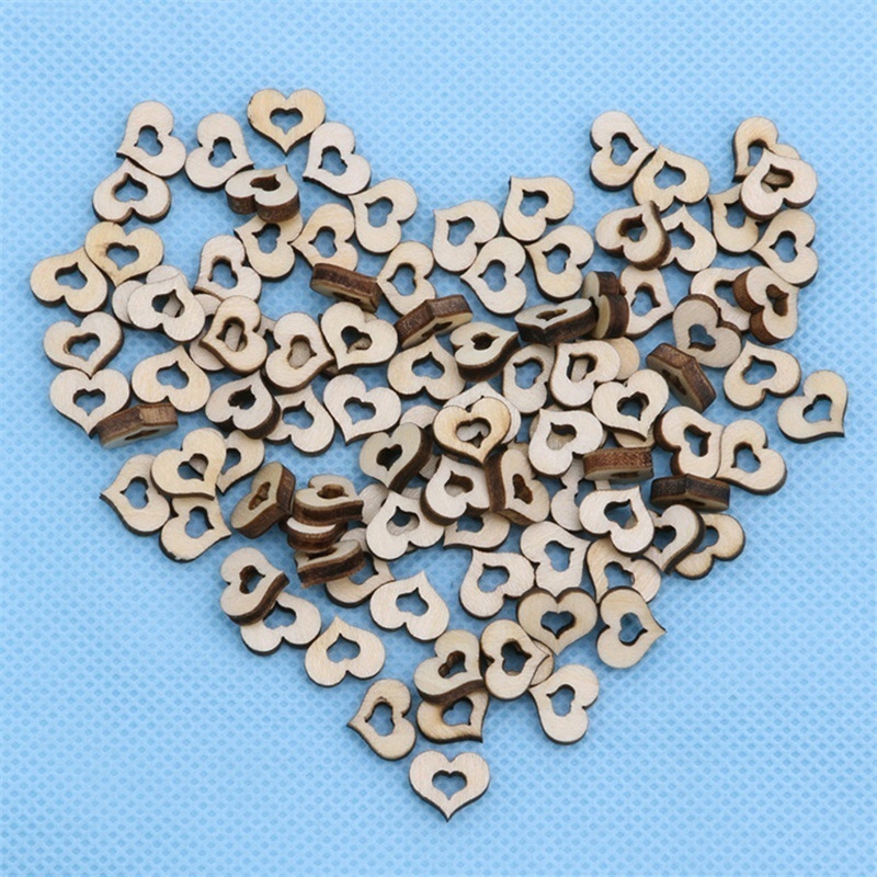 100pcs Hollow Wooden Love Heart Rustic Embellishments Crafts Gift DIY Decoration