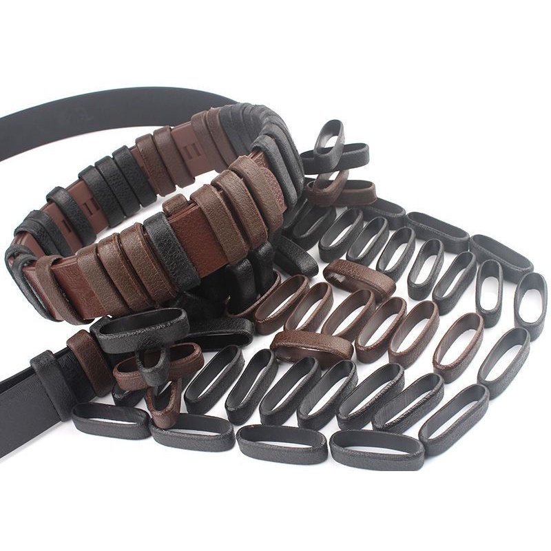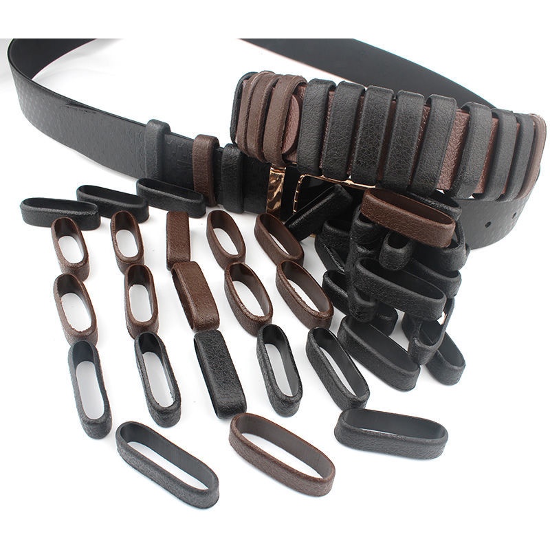 10pcs Set Men's Leather Belt Ring Belt Buckle Loop Fixing Tail Accessories Buckle Keychain Leather Ring Width 4cm