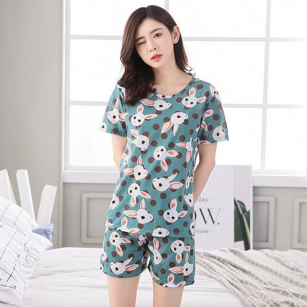11 Design Pajamas Set Lady Short Sleeve Sleepwear Nightwear Baju Tidur Silk Licin[ FIT TO 2XL]