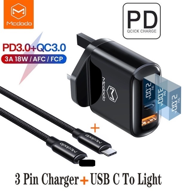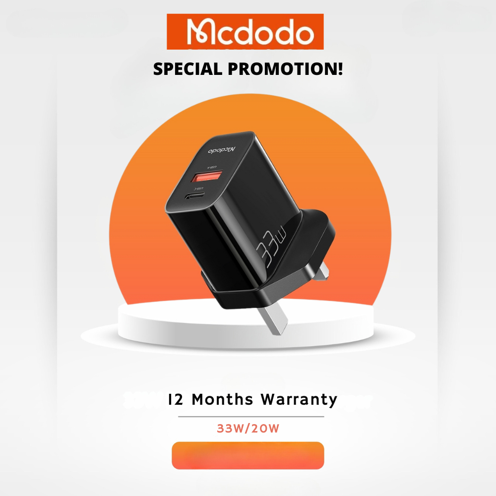 (12 Months Warranty) MCDODO 33W/20W Fast Charger 20W Fast Charger QC3.0 USB PD Dual Port For Android