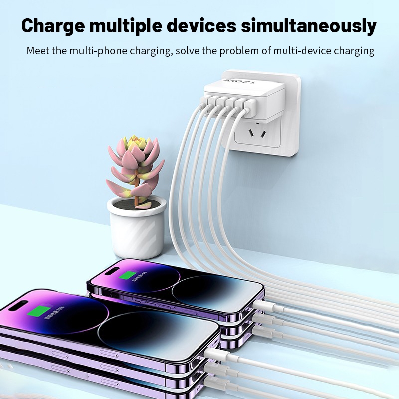 ?120W Fast Charger 6 Ports 3 USB+3 Type C Fast Charge Phone Power Adapter Fast Charge 3.0 Wall Charger For Micro/Type-C