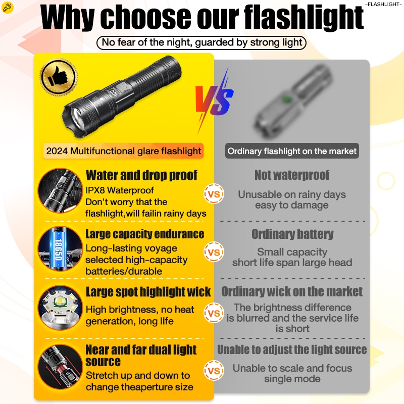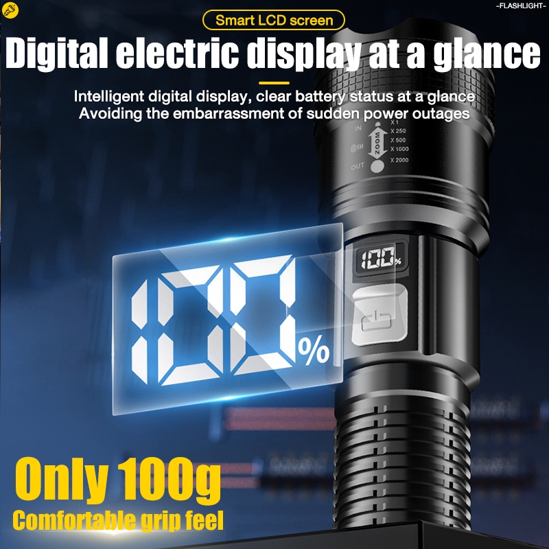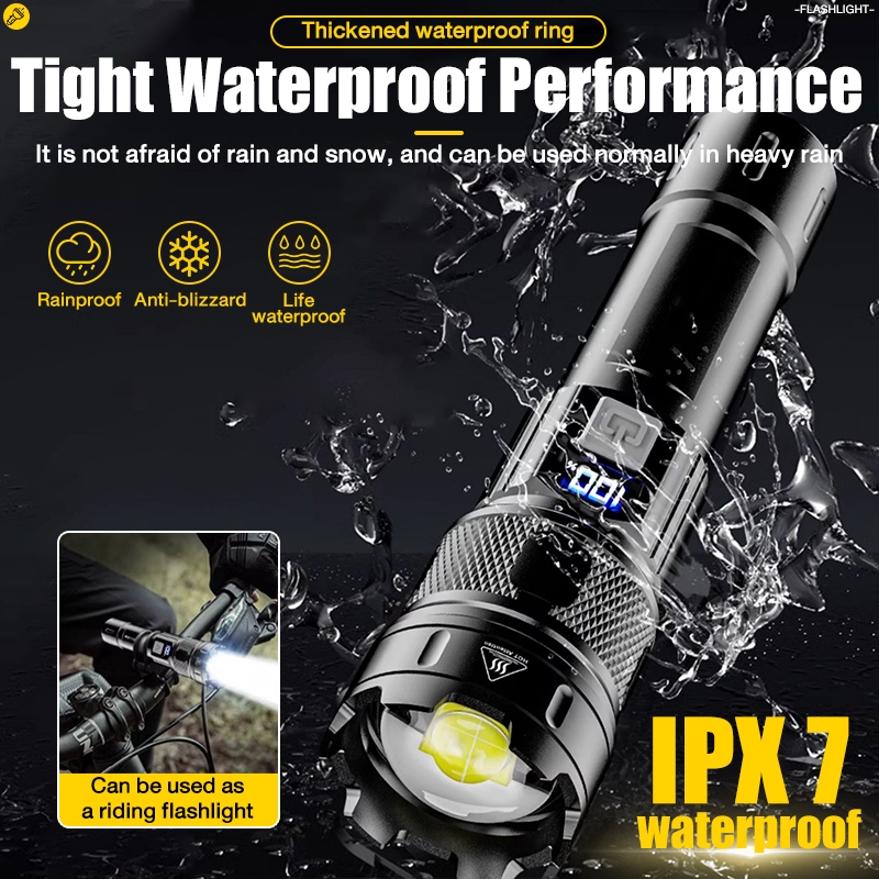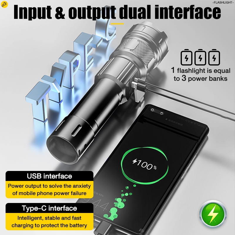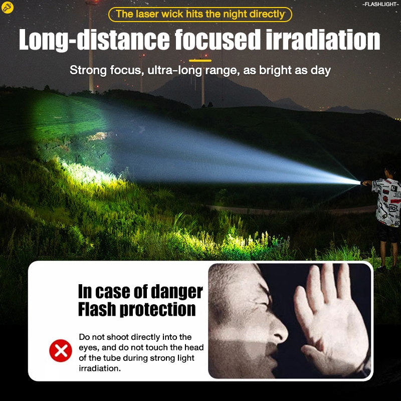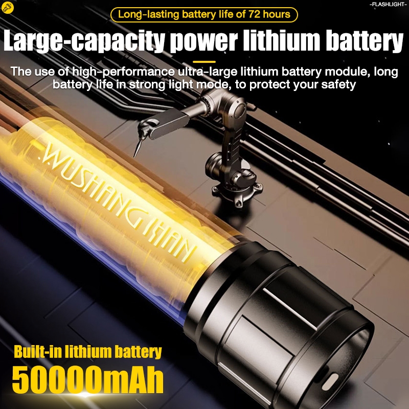 【128 hours of continuous use】LED lampu suluh led 50000w torch light rechargeable flashlight waterproof 手电筒