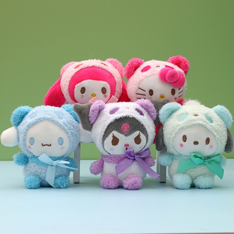 12CM Sanrio Collection Plush Toy Doll Kuromi Mini Moe Cinnamoroll Kt Cat My Melody Purin Dog Cute Cartoon Stuffed Plushie Pendant Keychain Toys for Girls Birthday Gift