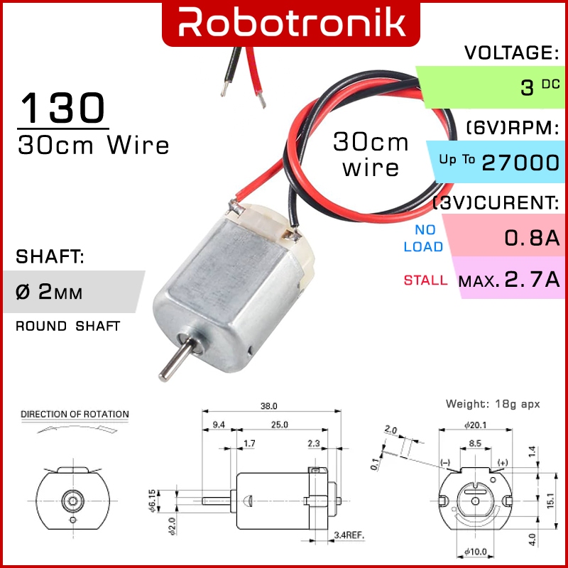 130 DC Motor / DC Motor with Wire / 89mm Propeller -Mini Small 1-6v 0.4A High Speed Toy Toys RC 2WD Car Arduino Robotics