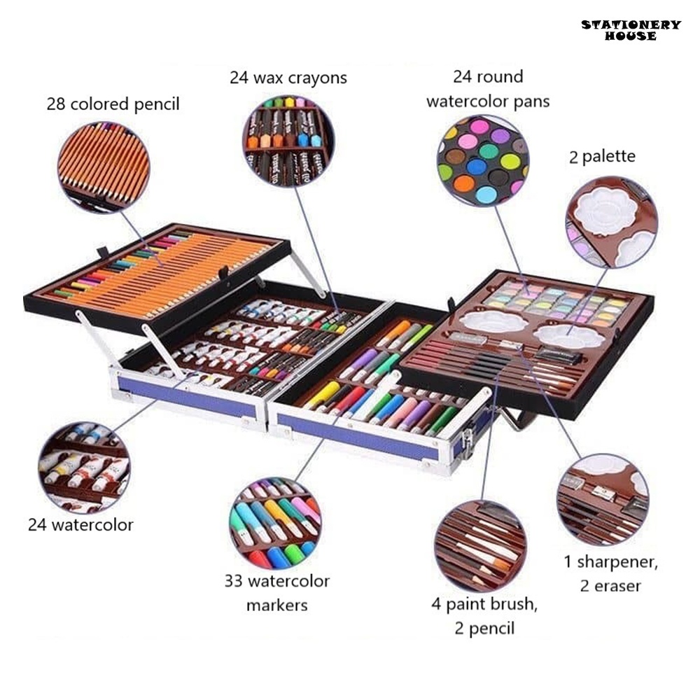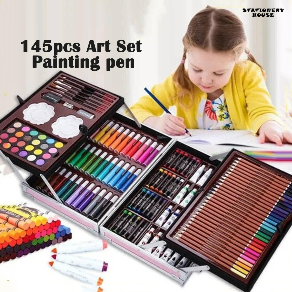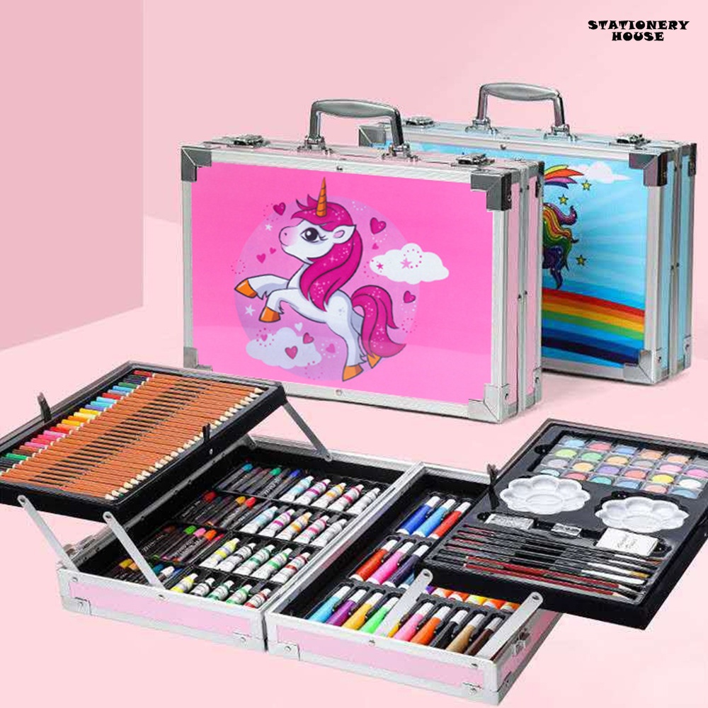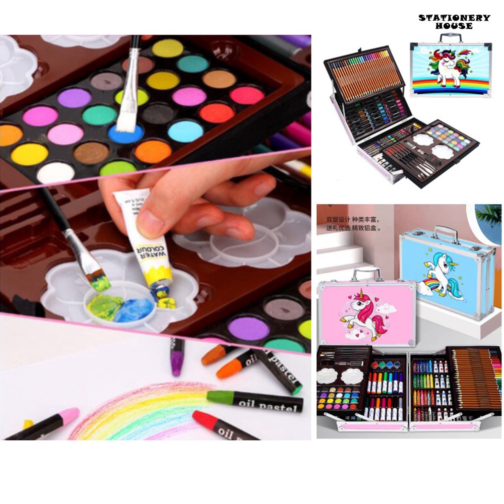 145pcs Art set Unicorn Design Aluminium Case Painting Pen Set Alat Tulis Cat Air Pens Crayon Marker Pensil DrawingPai