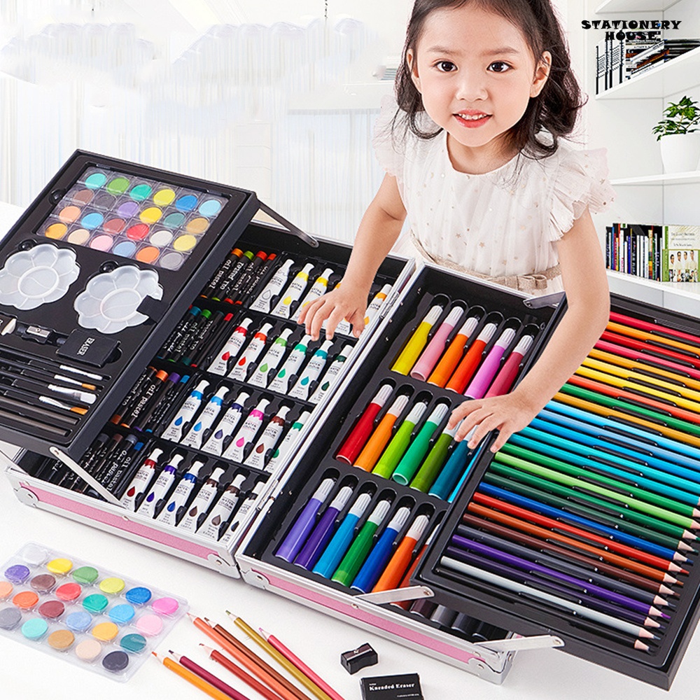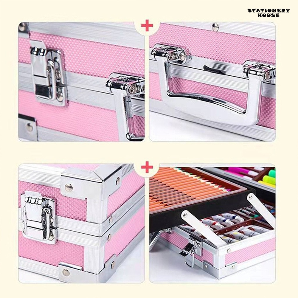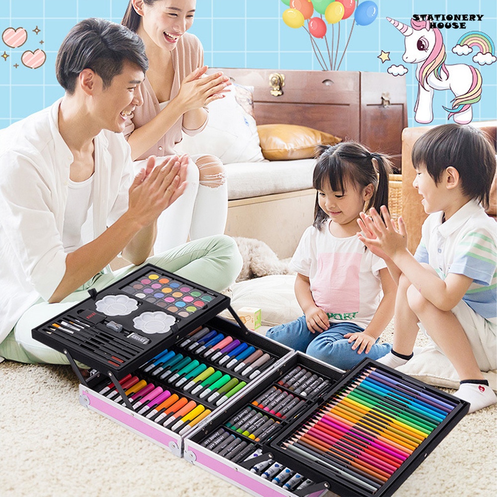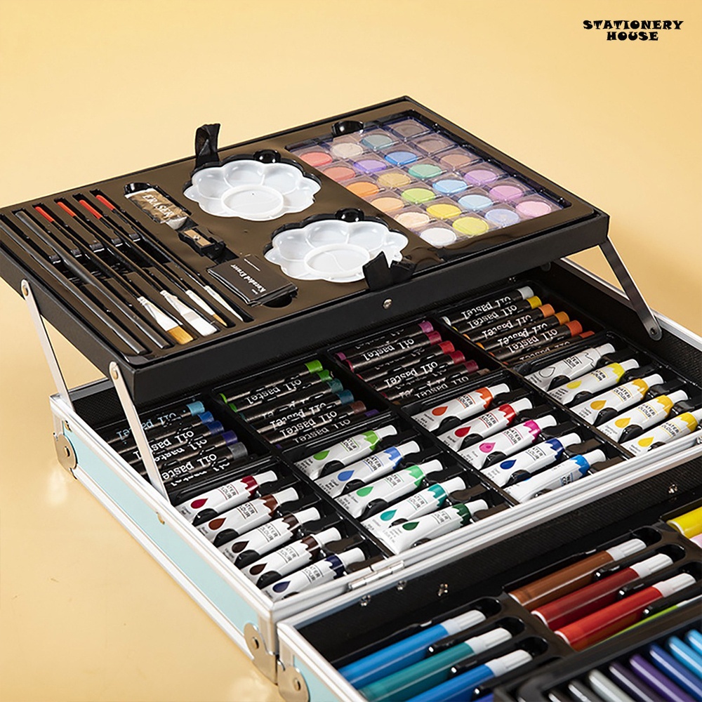 145pcs Art set Unicorn Design Aluminium Case Painting Pen Set Alat Tulis Cat Air Pens Crayon Marker Pensil DrawingPai