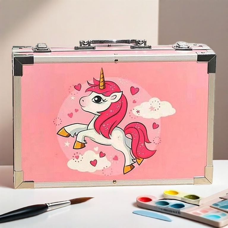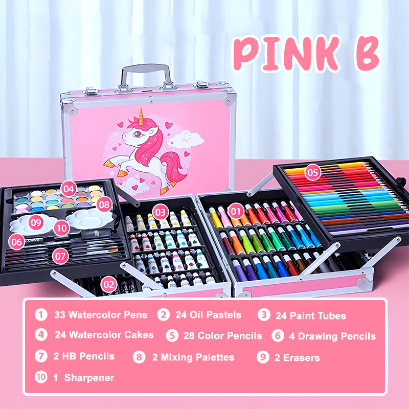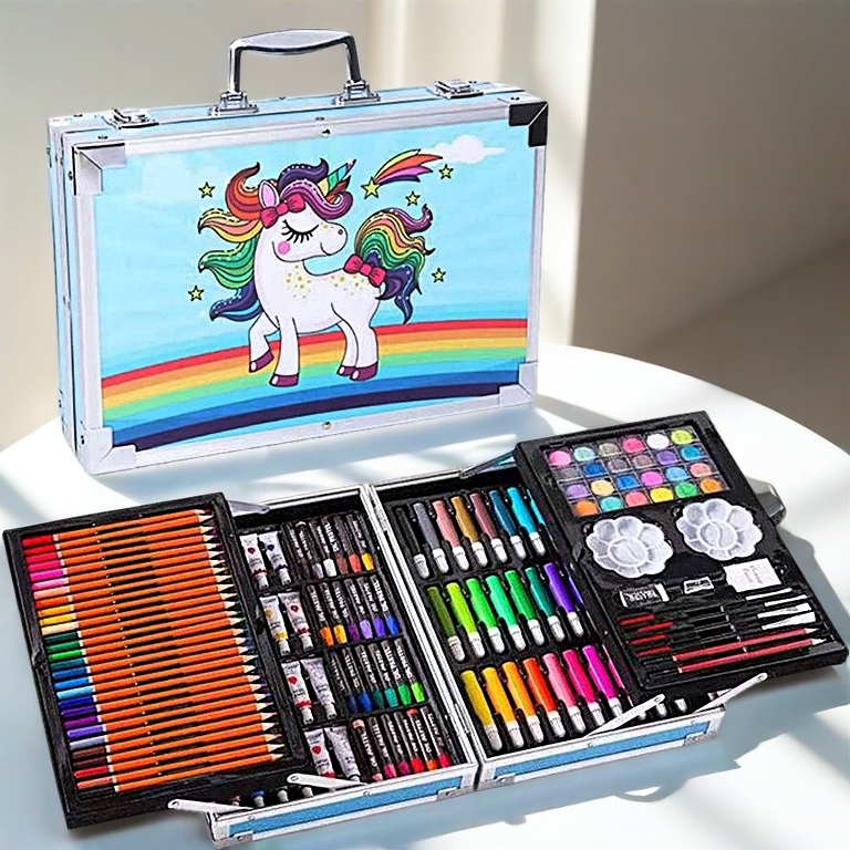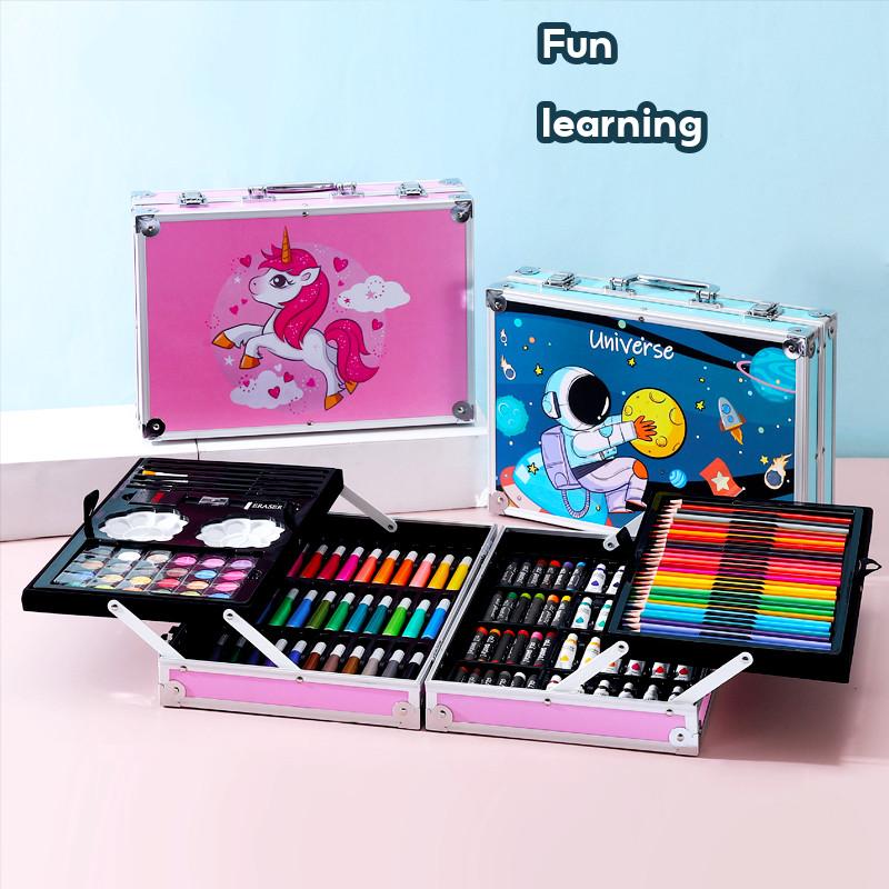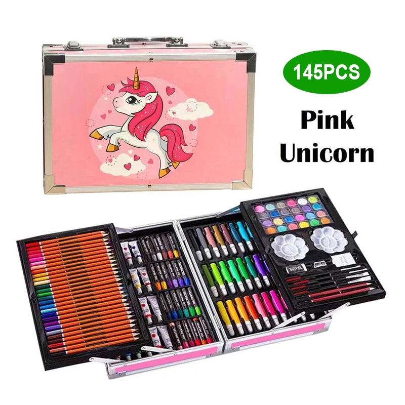 145pcs Art set Unicorn Design Aluminum Case Painting Pen Stationery Set Watercolor Pens Crayon Marker Pencil Drawing Pai