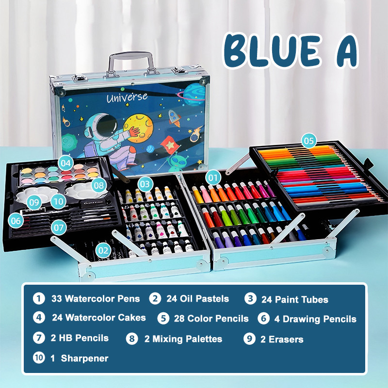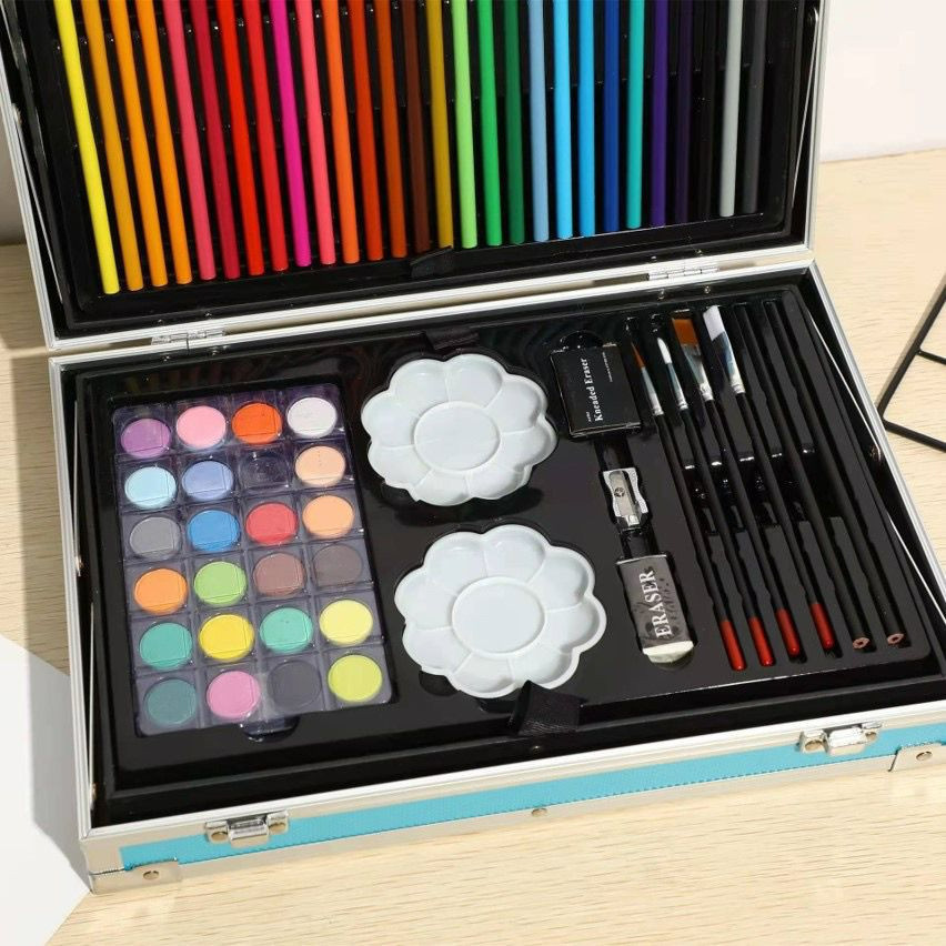 145PCS Watercolor Drawing Art Set Aluminum Case Painting Pen Stationery Set Watercolor Pens Crayon Marker Pencil Warna