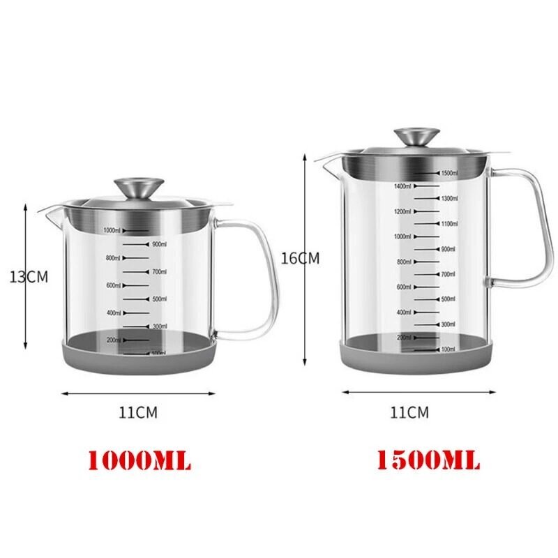 1500ml Oil Filter Pot Kitchen Oil Separator Oil Bottle Glass Oil Storage Jug Oil jug Minyak
