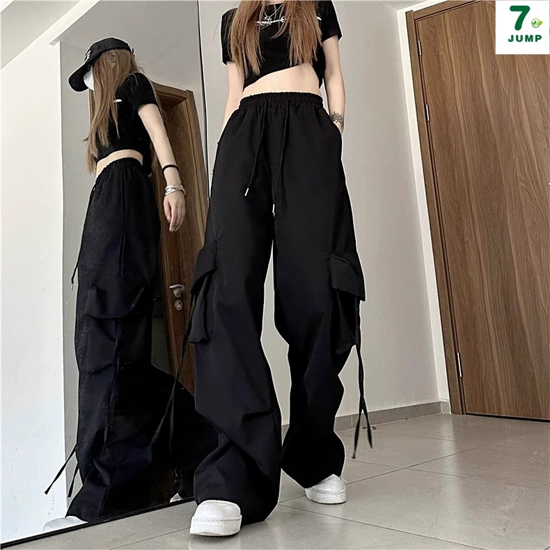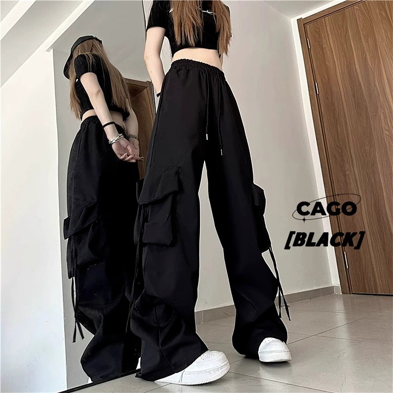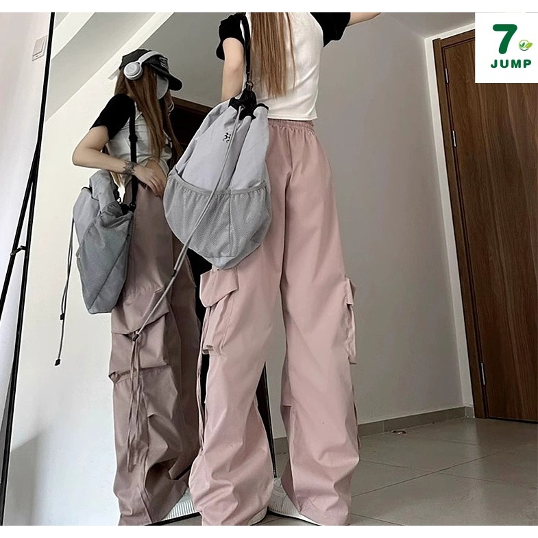 19Colors Ready Stock??Women korean Style cargo pants Seluar Kargo Perempuan Casual wide leg drawstring Baggy7J