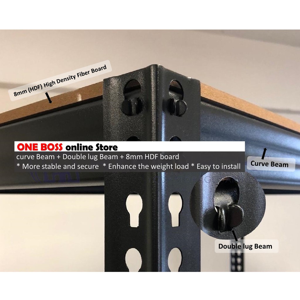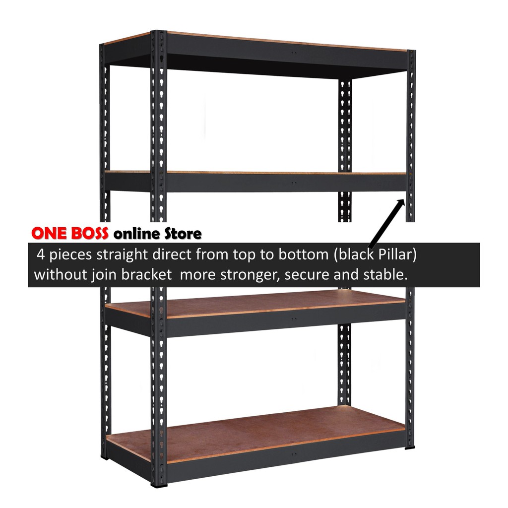 1BOSS 4 Tier/level MATTE BLACK Boltless Heavy Duty Rack Office File Home Storage Rak Dapur Besi 货架铁架