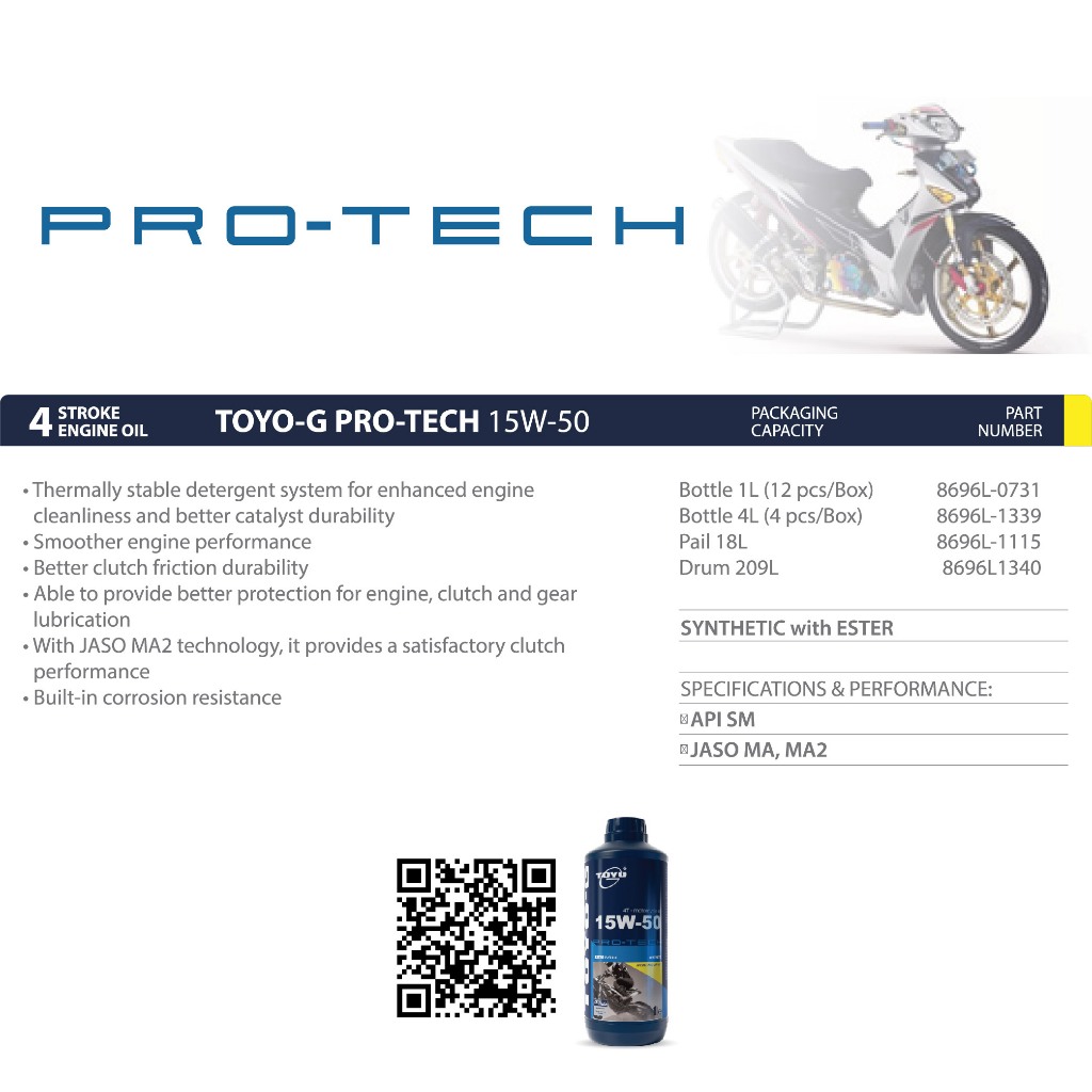 1L TOYO-G Protech SAE 15W-50 4-Stroke Motorcycle Synthetic Ester Mix Engine Oil