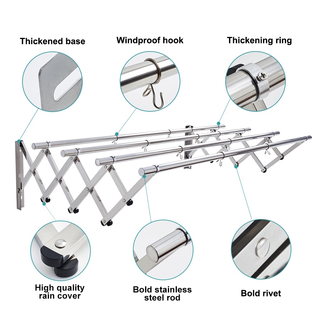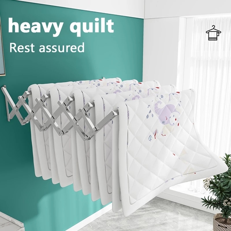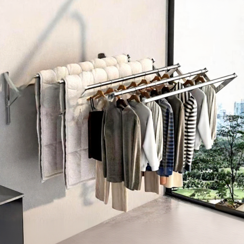 1M-2M 3/4/5 Bar Stainless Steel Retractable Wall Mounted Clothes Hanger Ampaian Baju Retractable Drying Rack 晾衣架