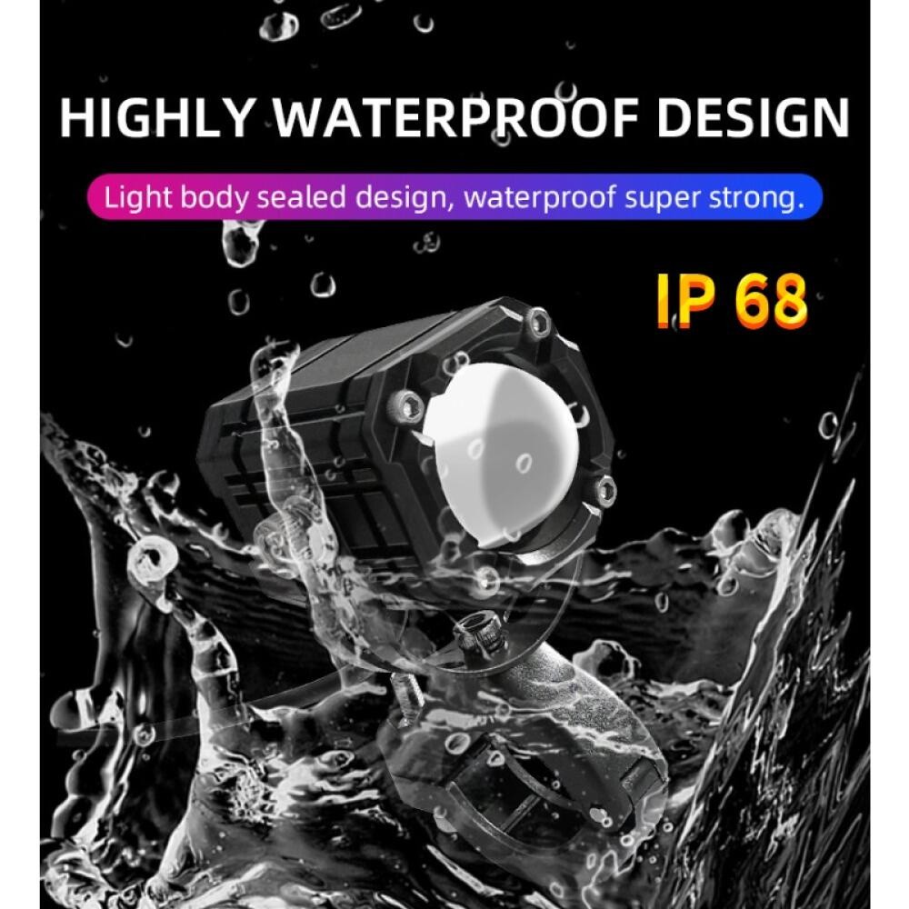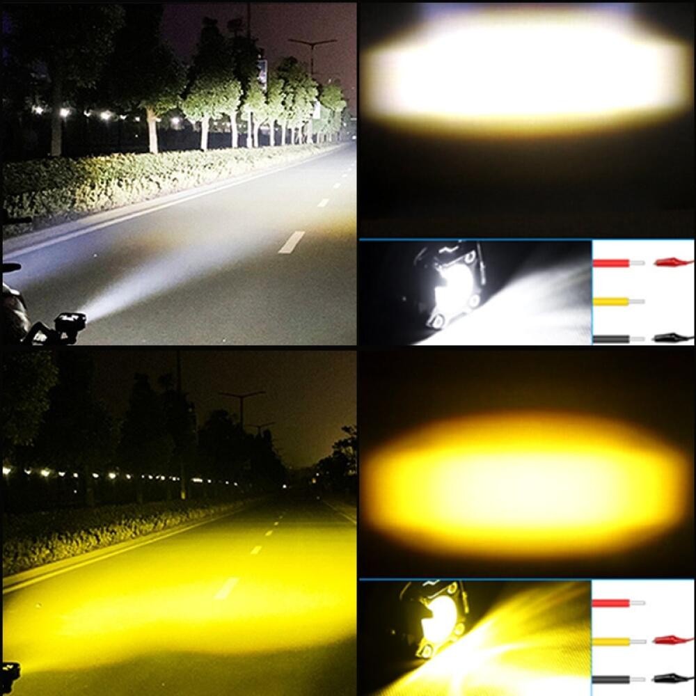 1Pair Angel eyes Tricolor Motorcycle LED Lights Mini Driving Light Spot Light Auxiliary 60W LED Pod Projector Light Motorcycle Headlight Driving Lamp Universal