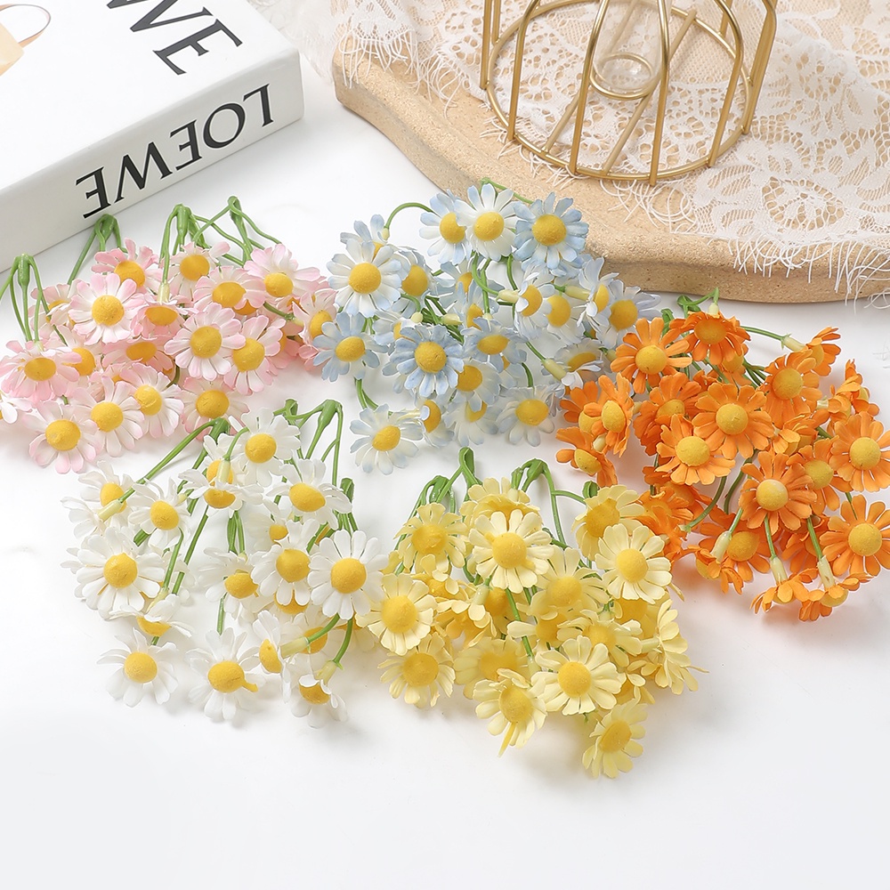 1PC Daisy Artificial Flowers Head 5 Fork Silk Fake Flowers for Home Room Decor Wedding Decoration Gift DIY Craft Accessories Simulation Flowers