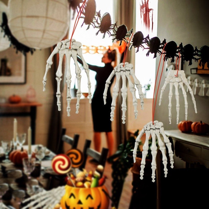 1Pc Realistic Halloween Haunted House Skull Skeleton Human Hand Bone Terror Adult Scary Props Party Decor Supplies
