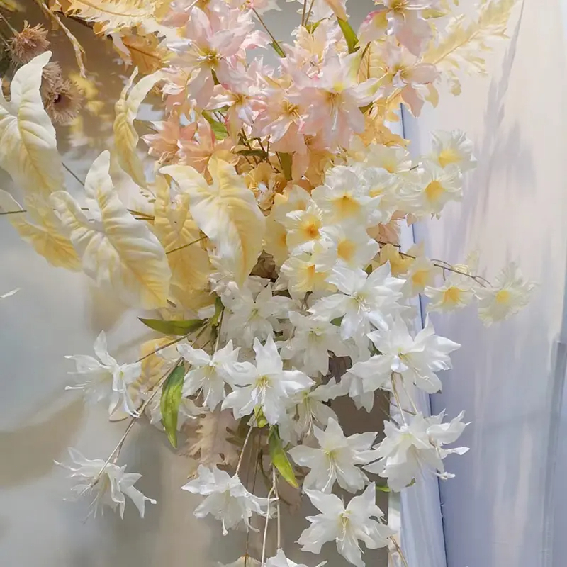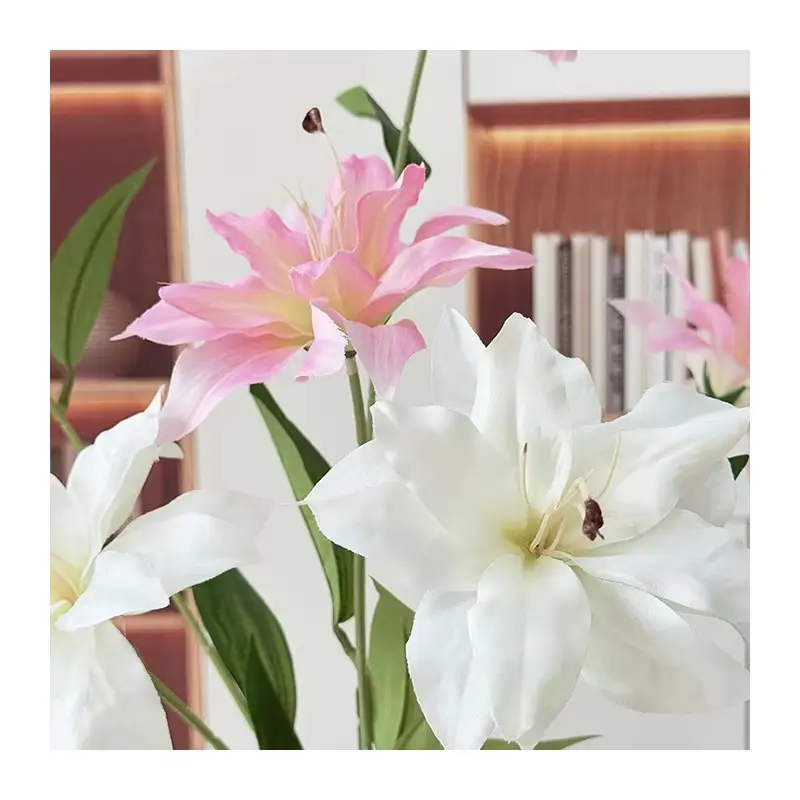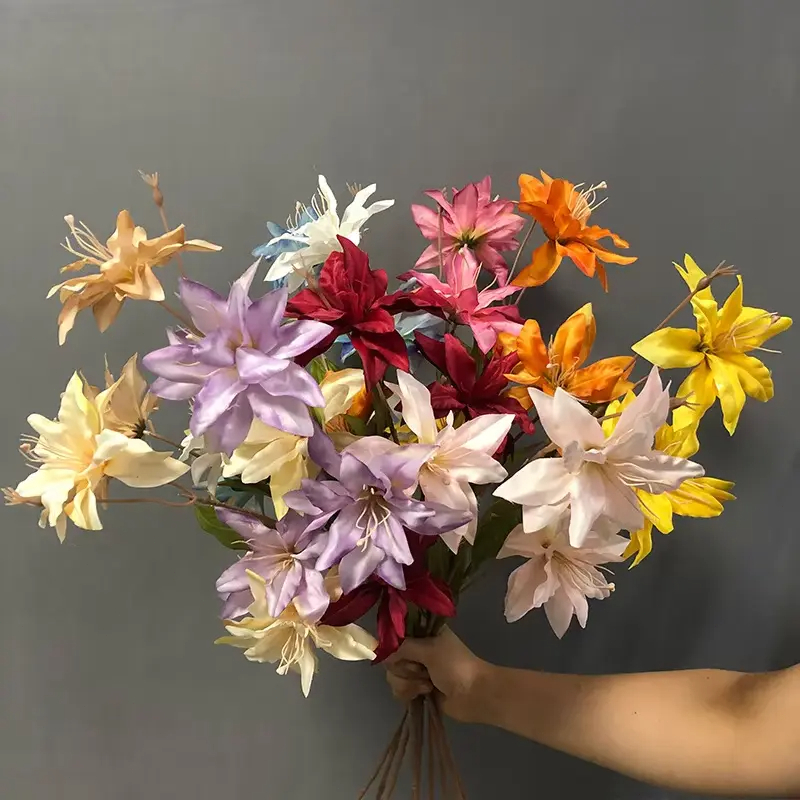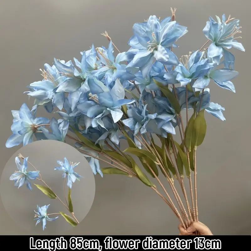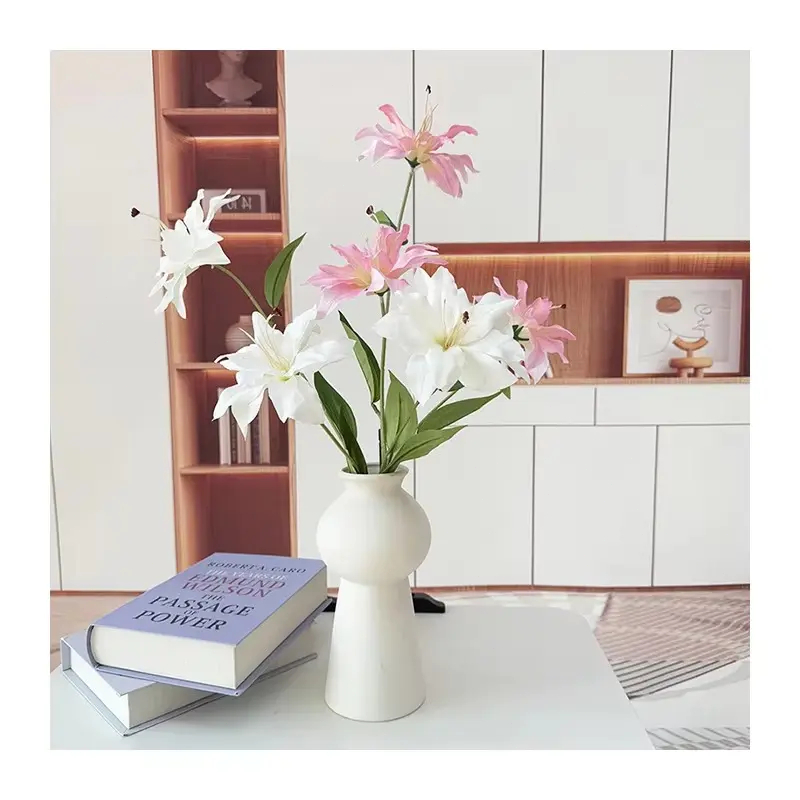1Pcs Artificial Head Lily Fake Rose Babys Breath Flower Bouquet For Home Wedding Decor