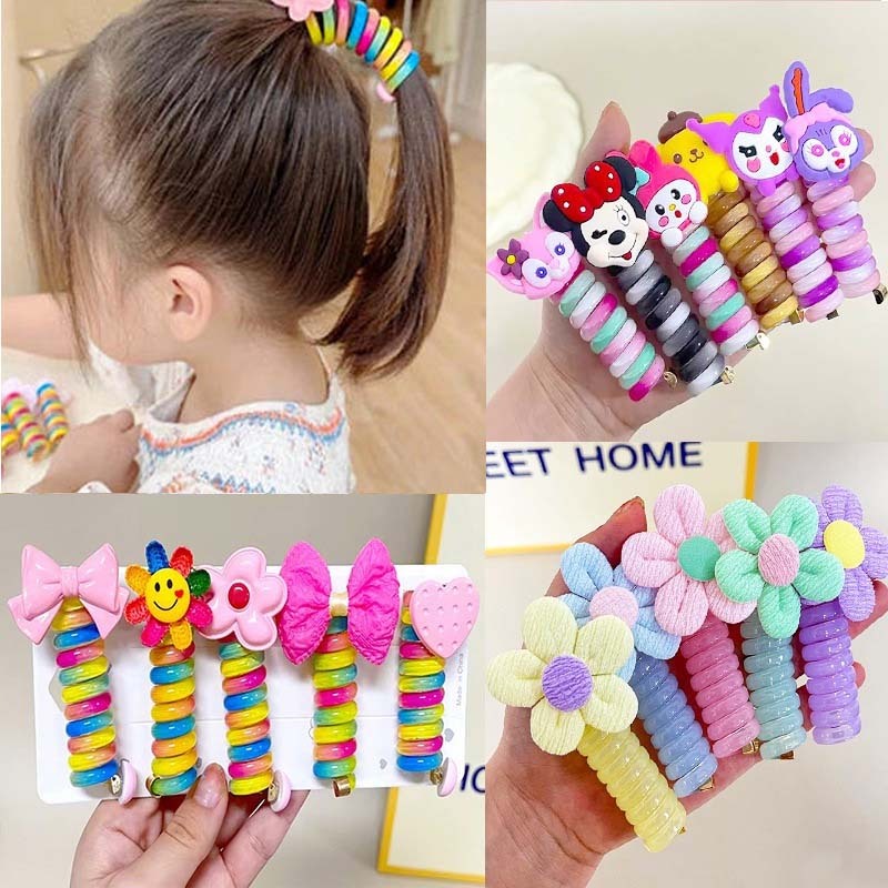 1Pcs Cartoon Hair Rope Hair Ties Fashion Telephone Wire Cute Girls Ponytail Hair Band