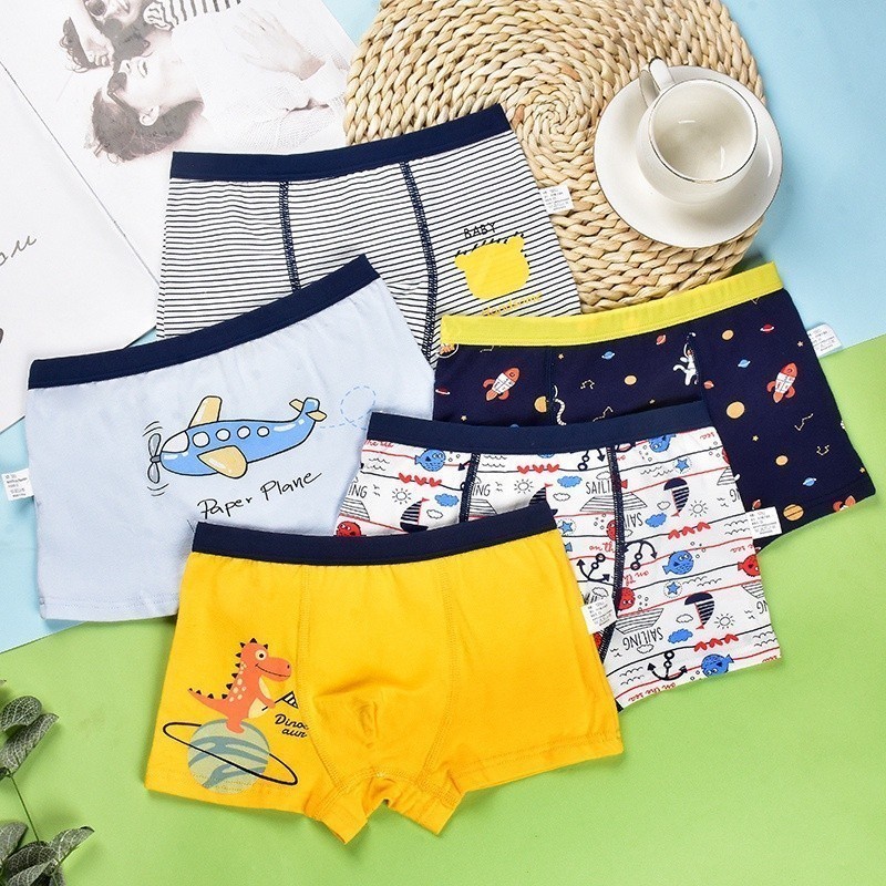 (2-15yrs) 4pcs Boy Boxer Underwear Breathable Soft Boxer Briefs Kids Underwear Boy Panties Dinosaur Print 0526
