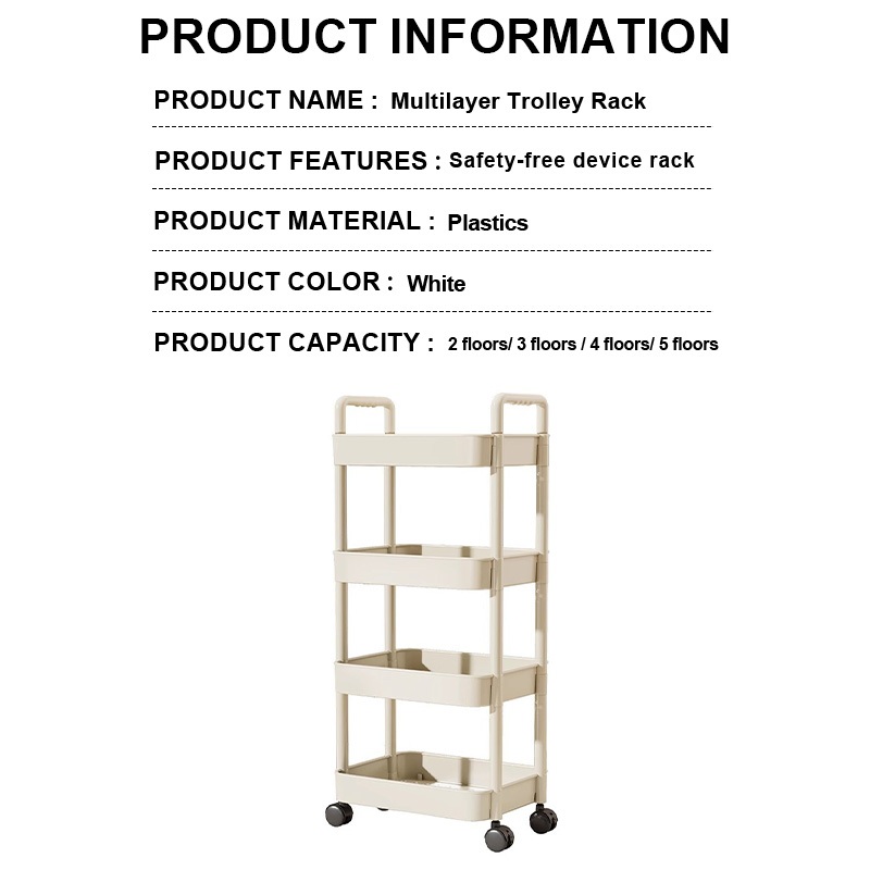 2/3/4/5 Layer Trolley Cart Organizer Storage Shelf on Wheels for Room and Kitchen
