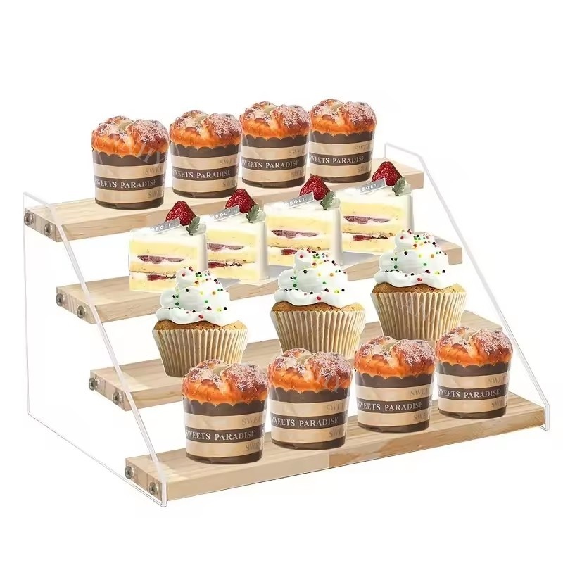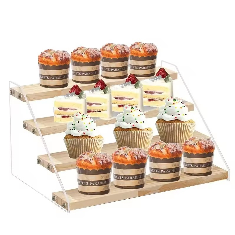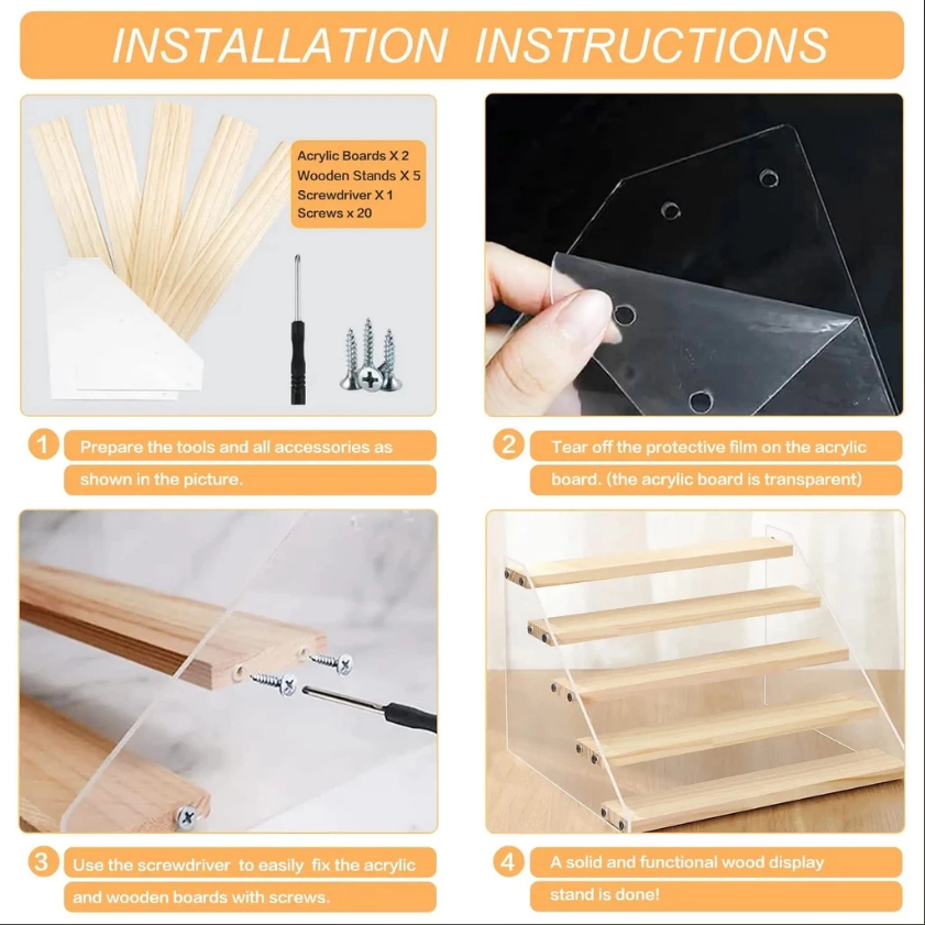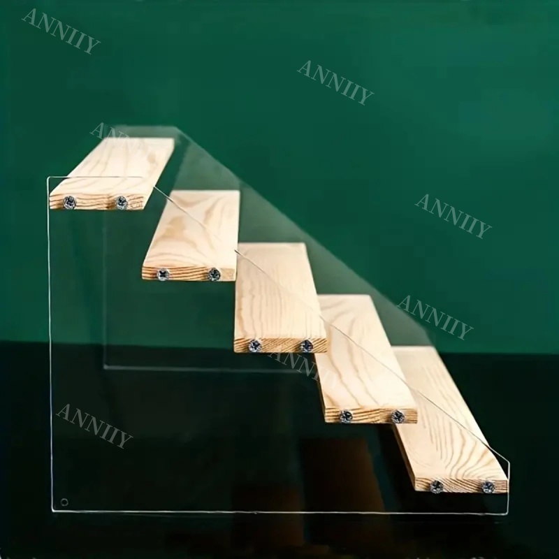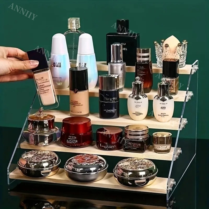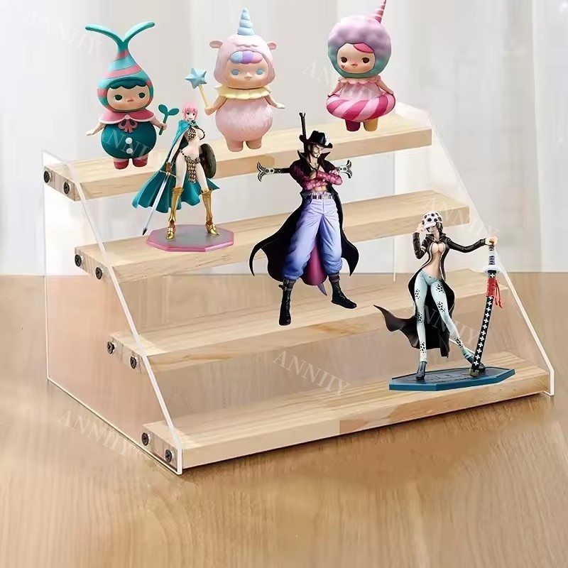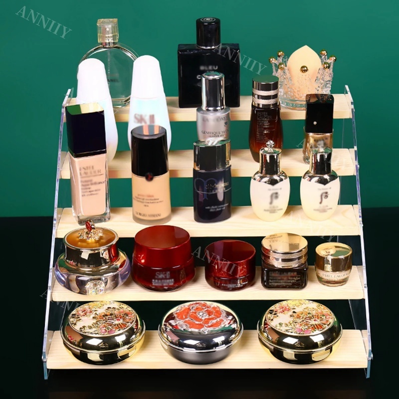 2-5 Layers Acrylic Storage Display Wooden Shelf Rack Figure Ladder Showcase Display Stand Cosmetics Display