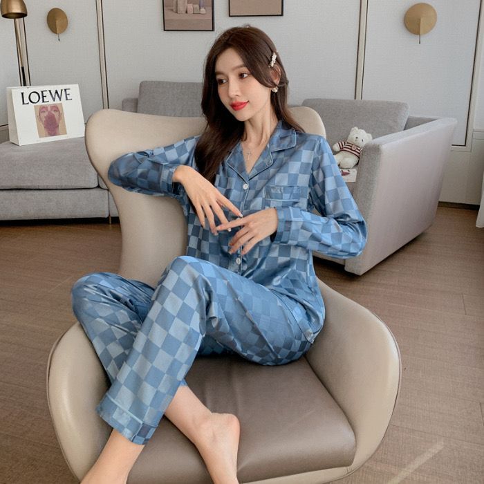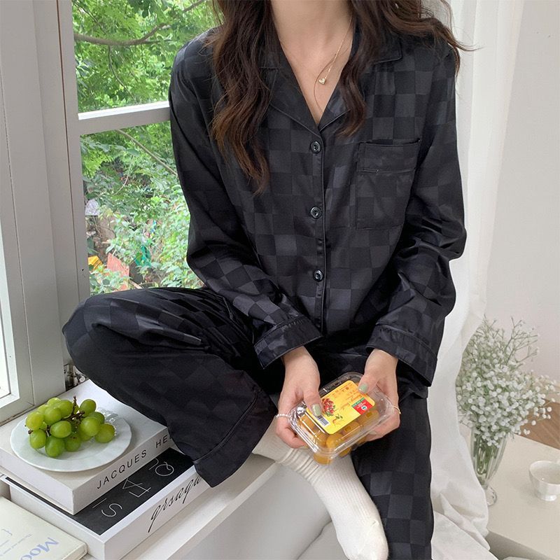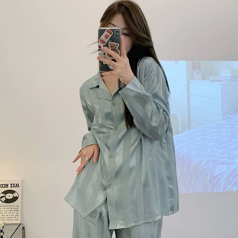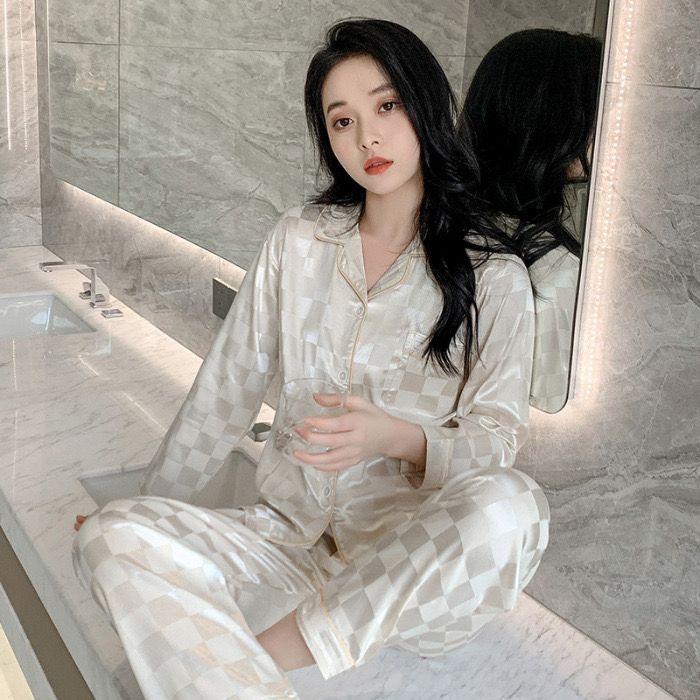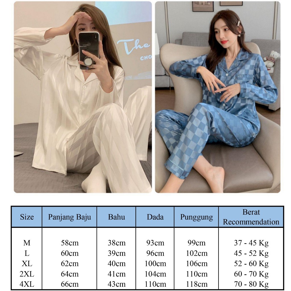2 in 1 Set Satin Long Sleeve Pyjamas Women Sleepwear Silk Pajamas Lengan Panjang Baju Tidur Perempuan Wanita Pakai Malam