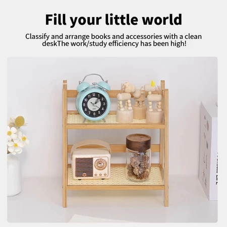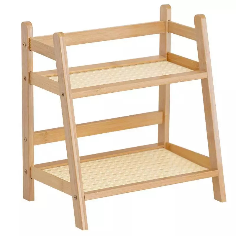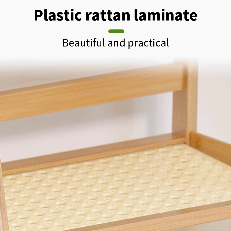2-layer Floor to Ceiling Multi-layer Desktop Trapezoidal Shelf Bookshelf Plastic Rattan Cream Style Home Kitchen Rack