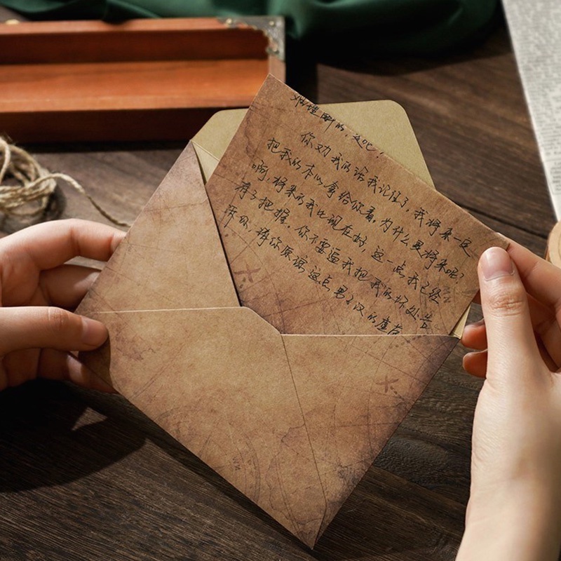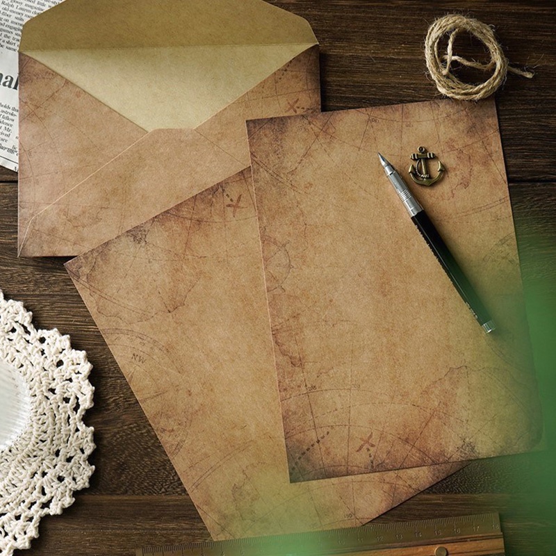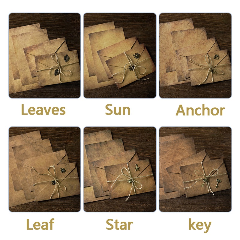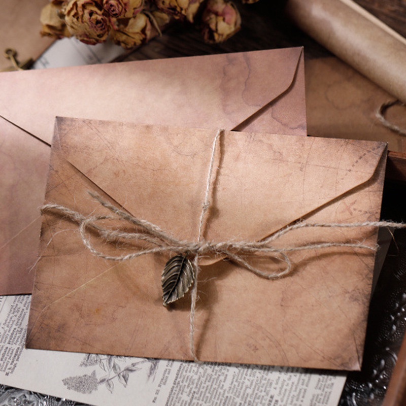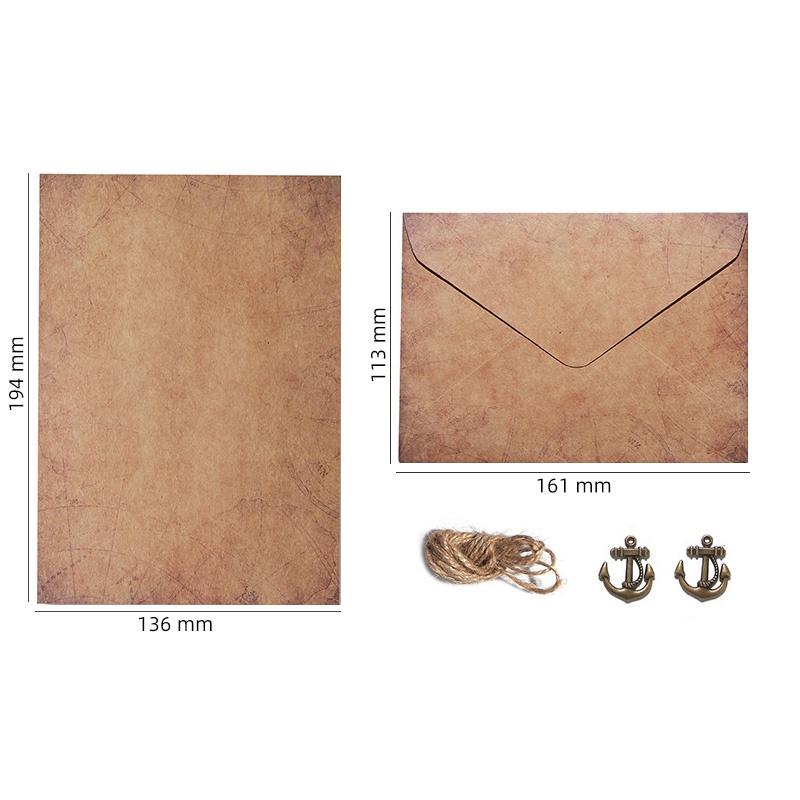 2 Pcs Vintage Romantic Kraft Envelope and Letter Paper Set with Hemp Rope