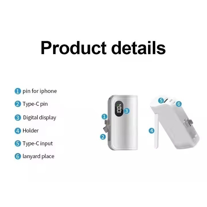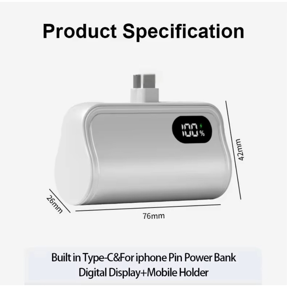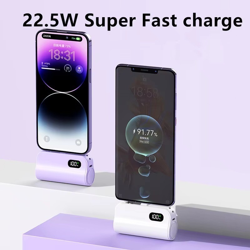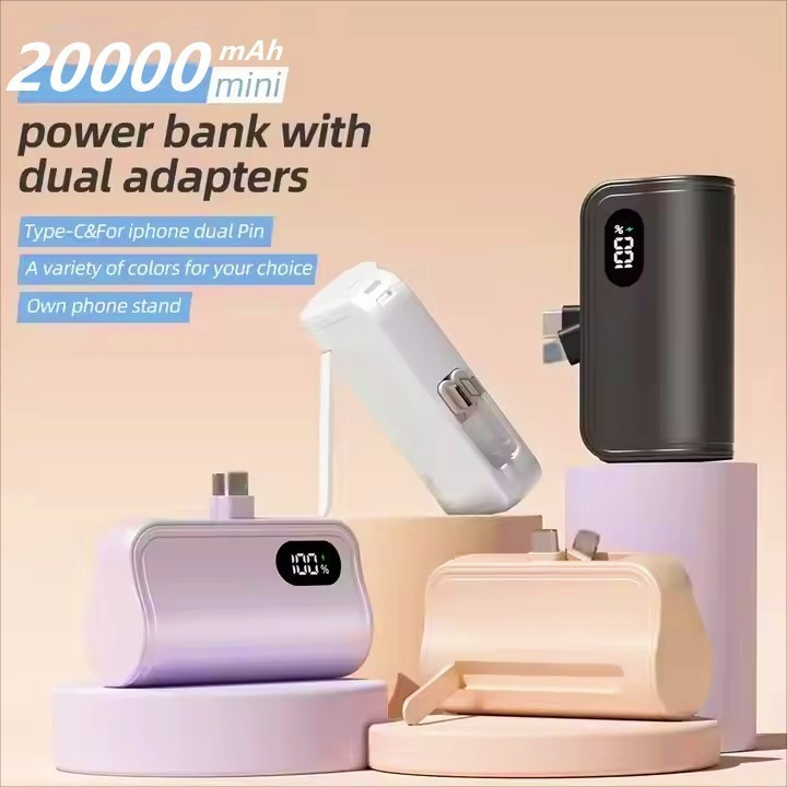 20000mAh Portable Capsule Powerbank PD 22.5W Fast Charging Digital Display Compact Charger Built-in USB-C Iphone 充电宝