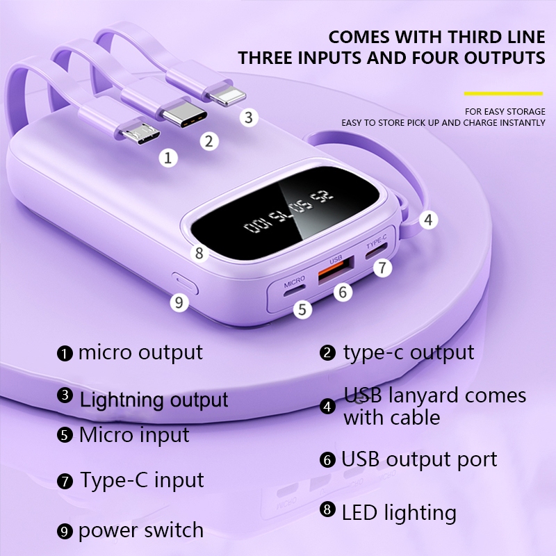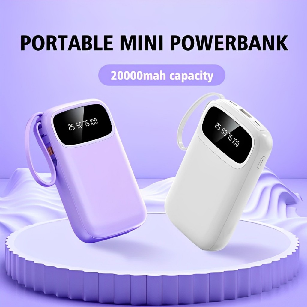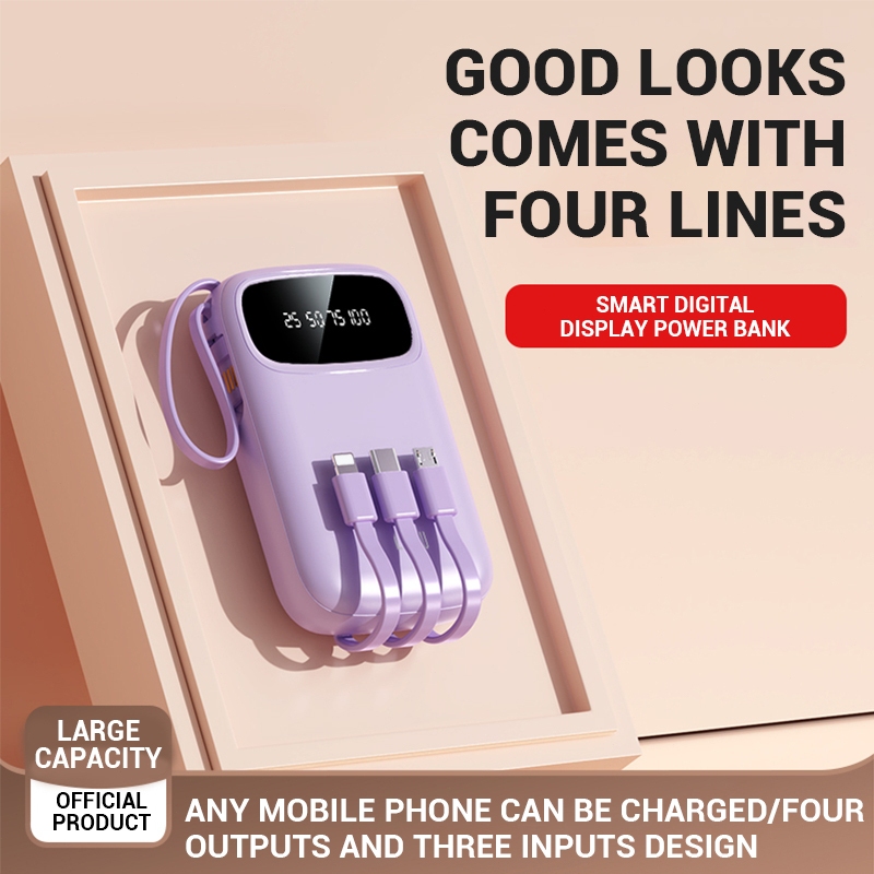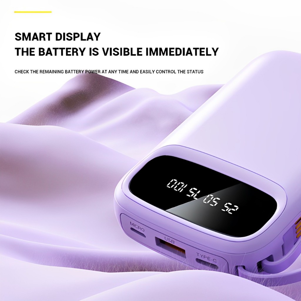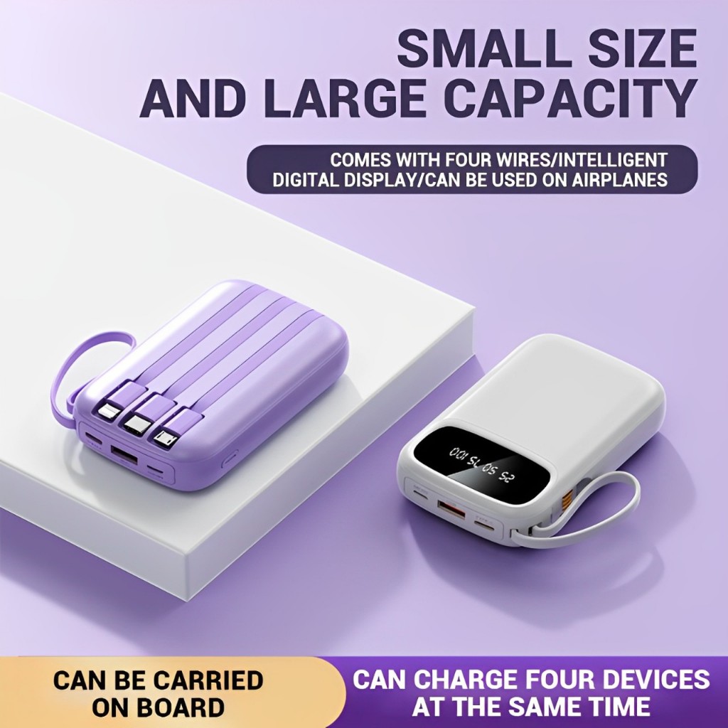 20000mAh Power BanK Fast Charging Built in 4-Cable powerbank Portable Charger Digital Display