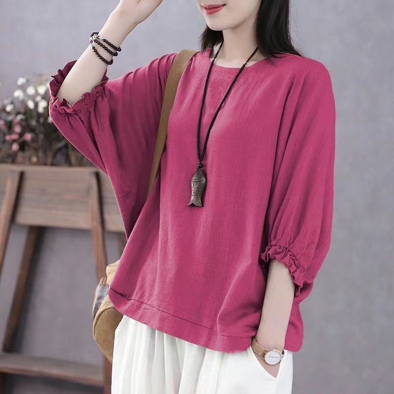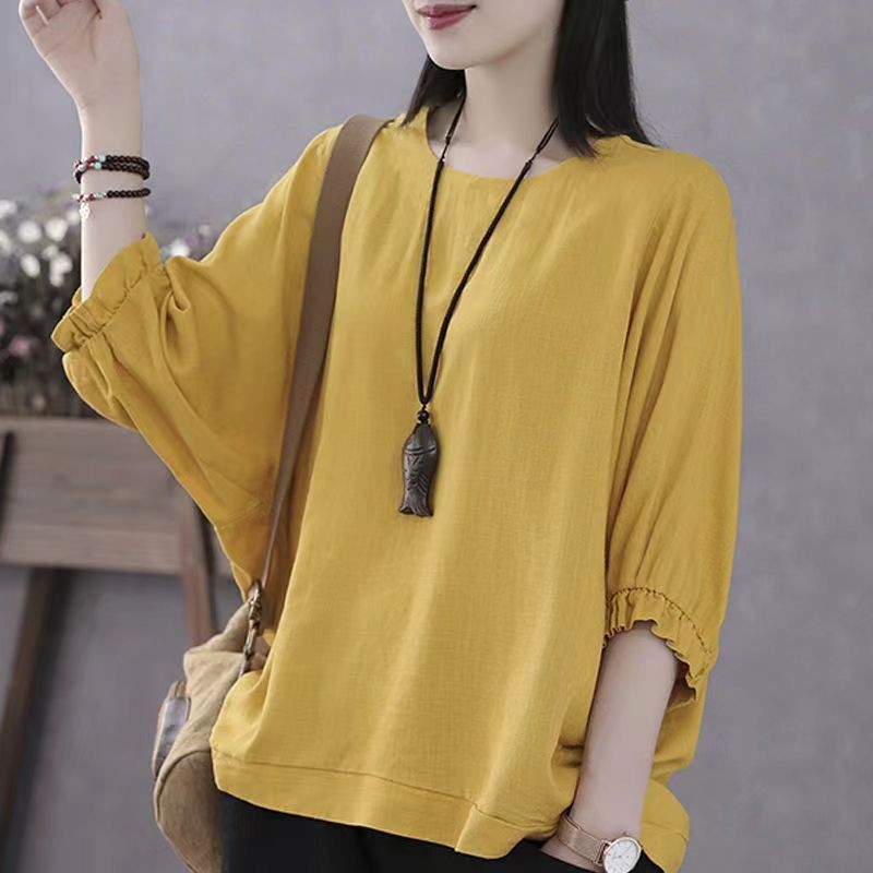 2024 New Style Bat Sleeve Loose Plus Size Mother Wear T-Shirt Top Summer Cover Belly Slimmer Look Short-Sleeved Lantern